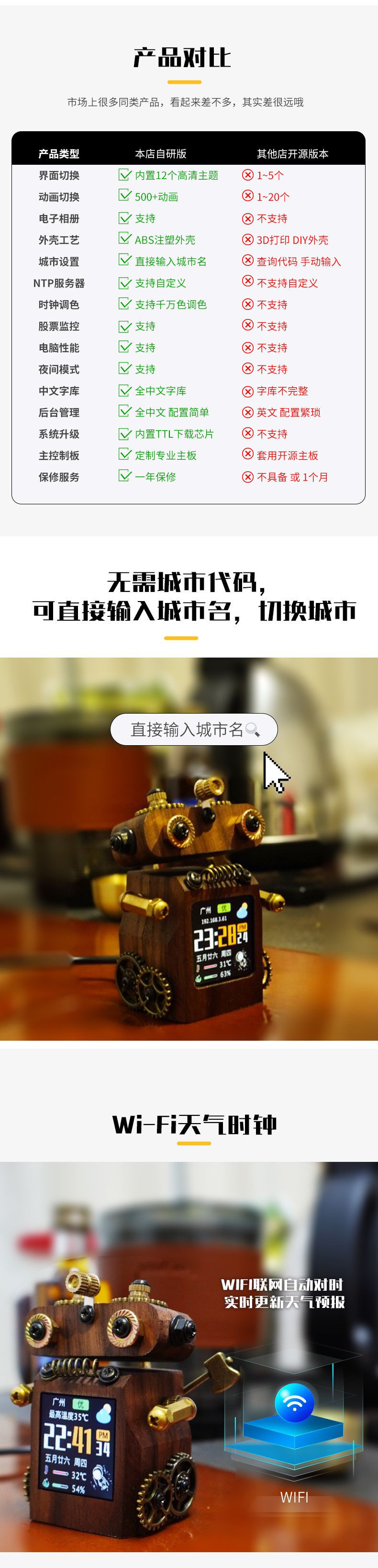 WIFI 데스크탑 날씨 시계 테이블 타이드 플레이 스마트 컬러 스크린 알림 생일 선물 스마트 크리에이티브 프로