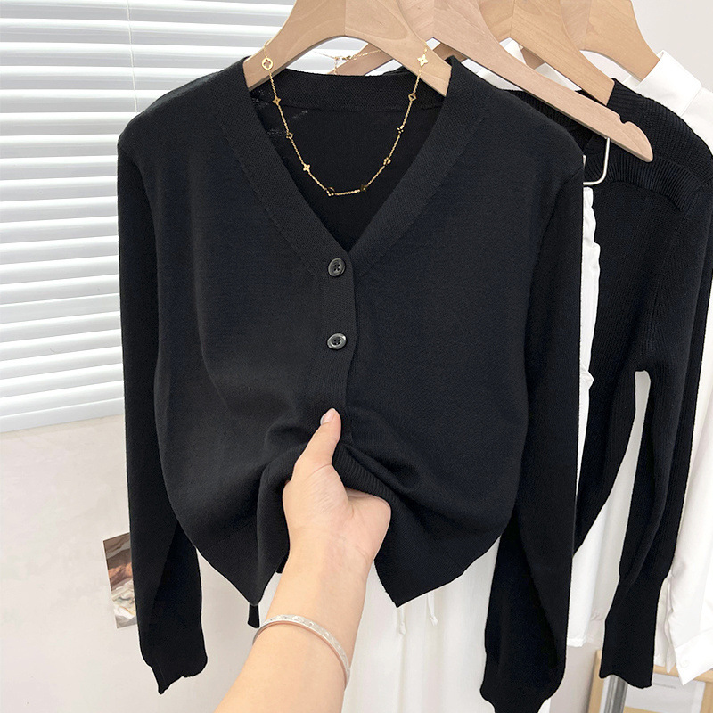 니트 스웨터 칼라 카디건 여성 2025 가을 새로운 짧은베이스 스웨터 코트 가을 회색 긴 소매 탑스토어 가기