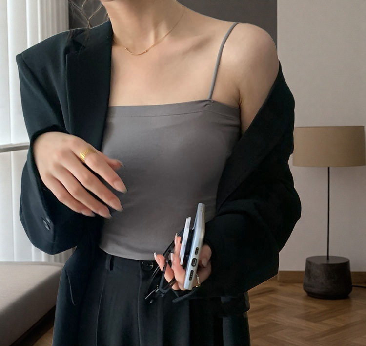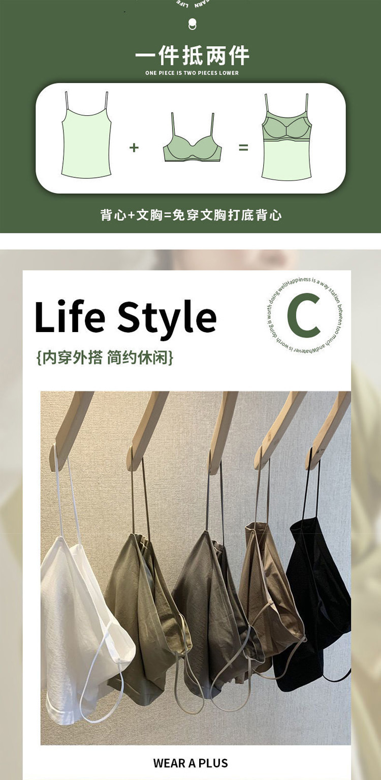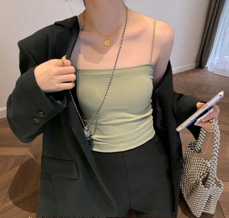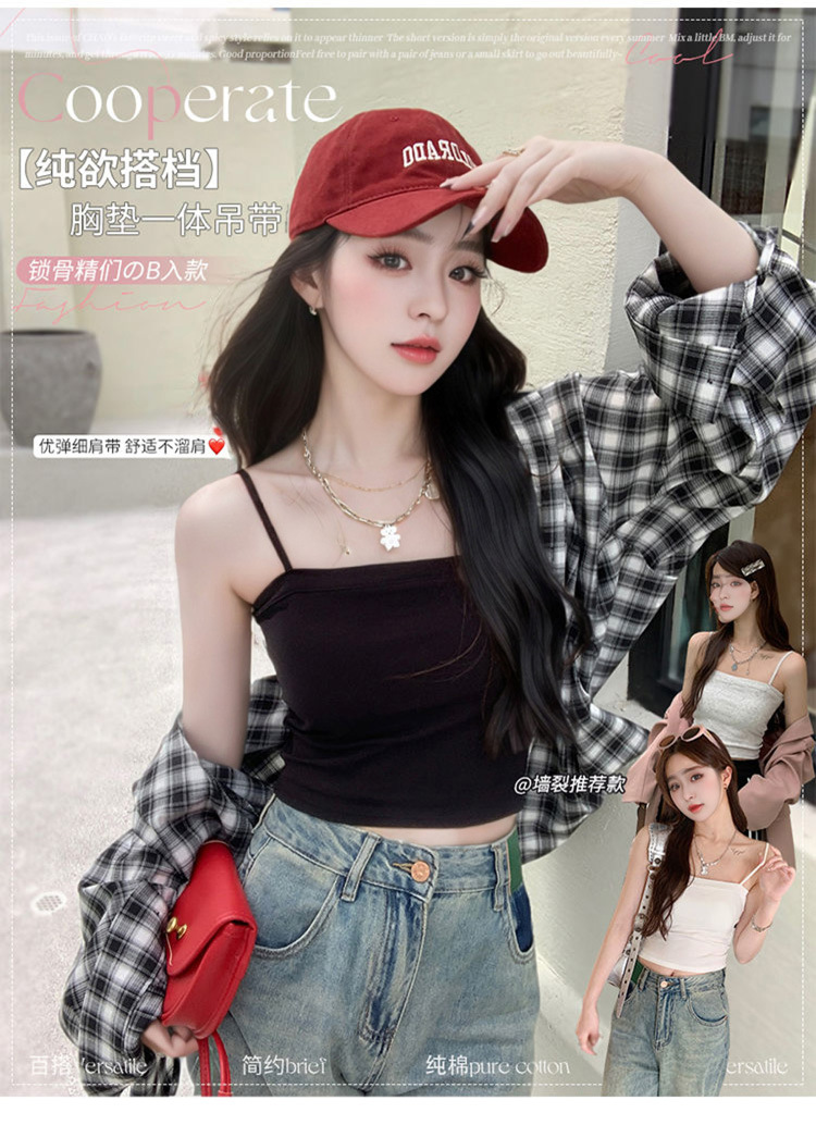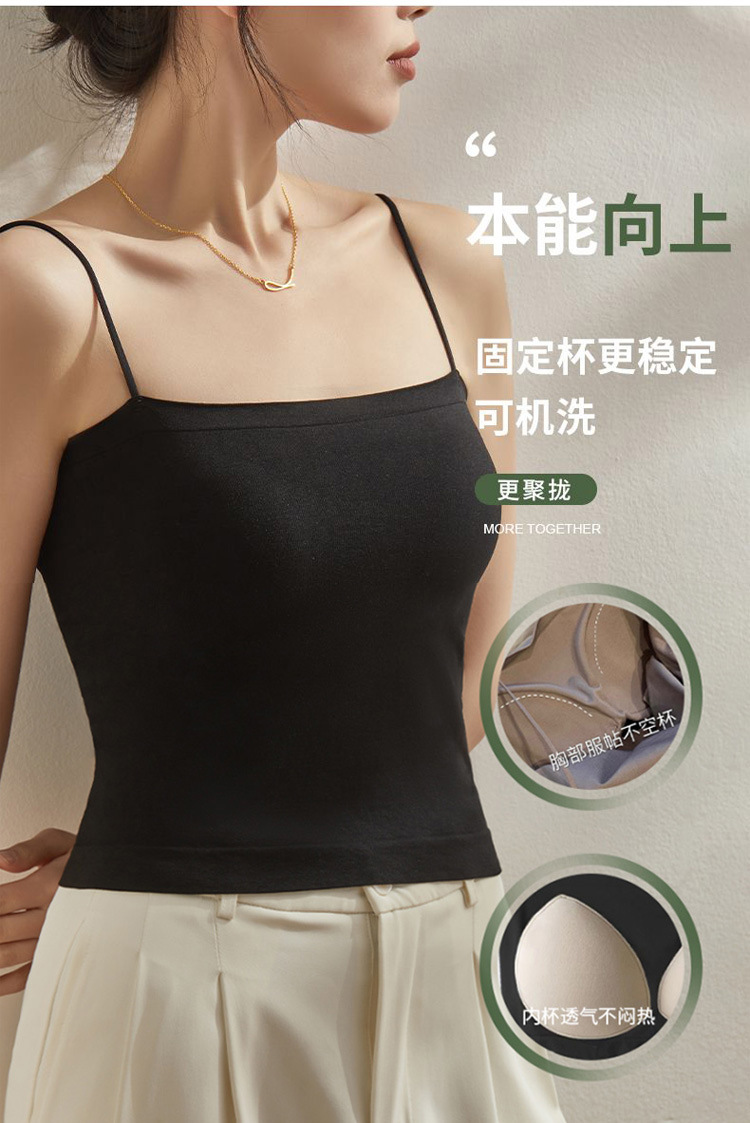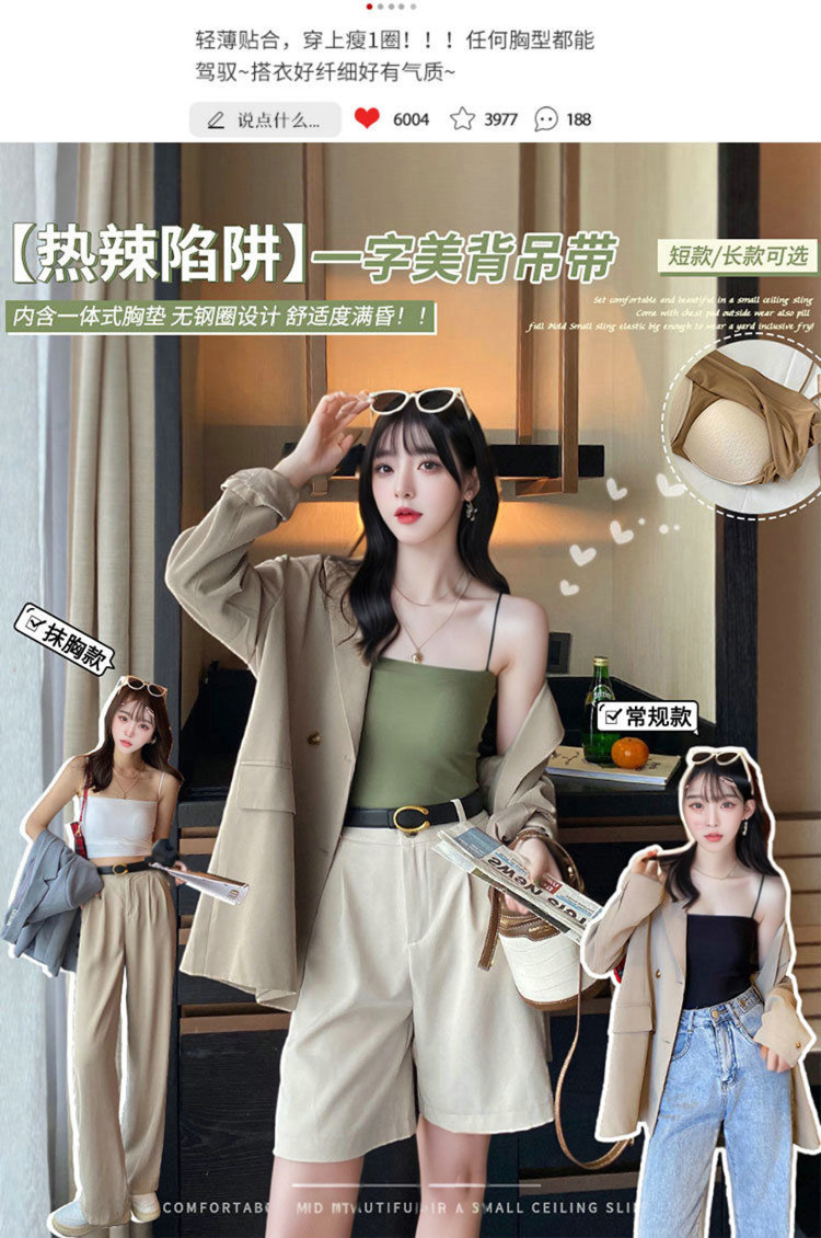 작은 Camisole 여성 내복 여름 2025 새로운 섹시 베이스 셔츠 가슴 패드 브래지어 원피스 아름다운 백탑스토어 가기