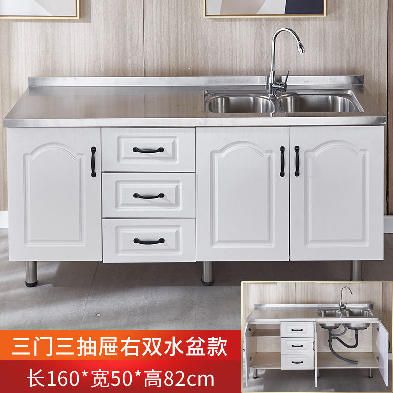 주방 캐비닛 스테인레스 스틸 캐비닛 간단한 캐비닛 임대 가정용 경제적 스토브 캐비닛 간단한 캐비닛