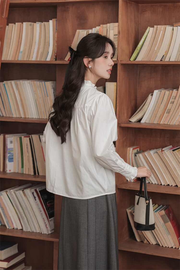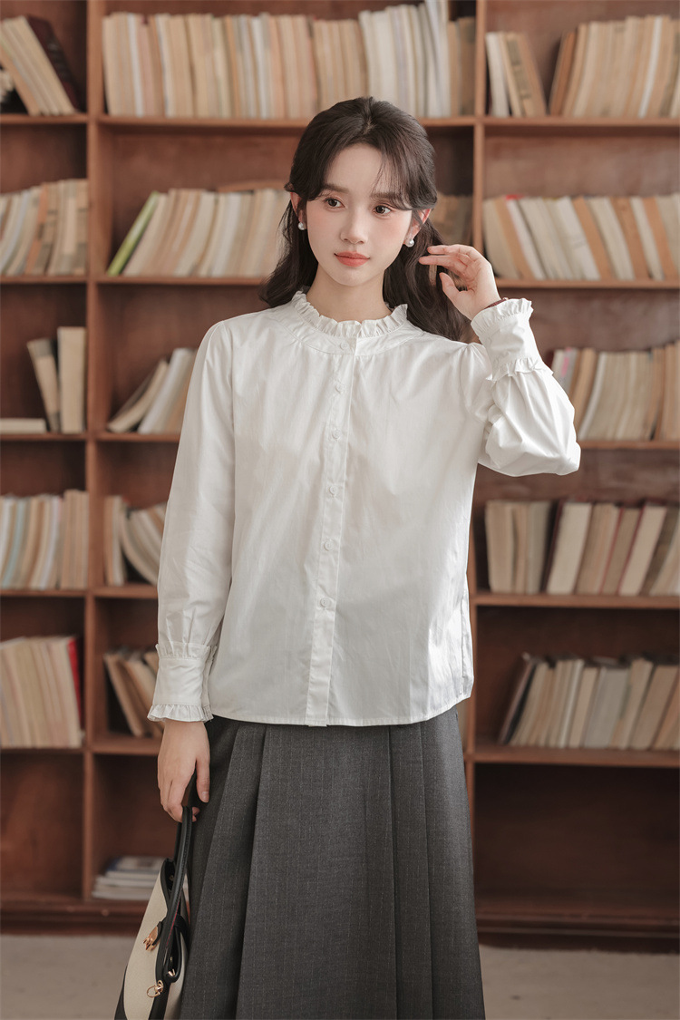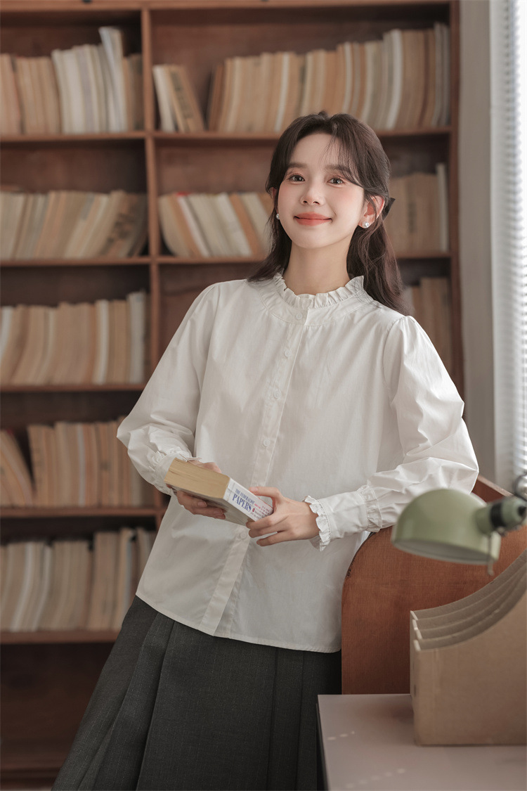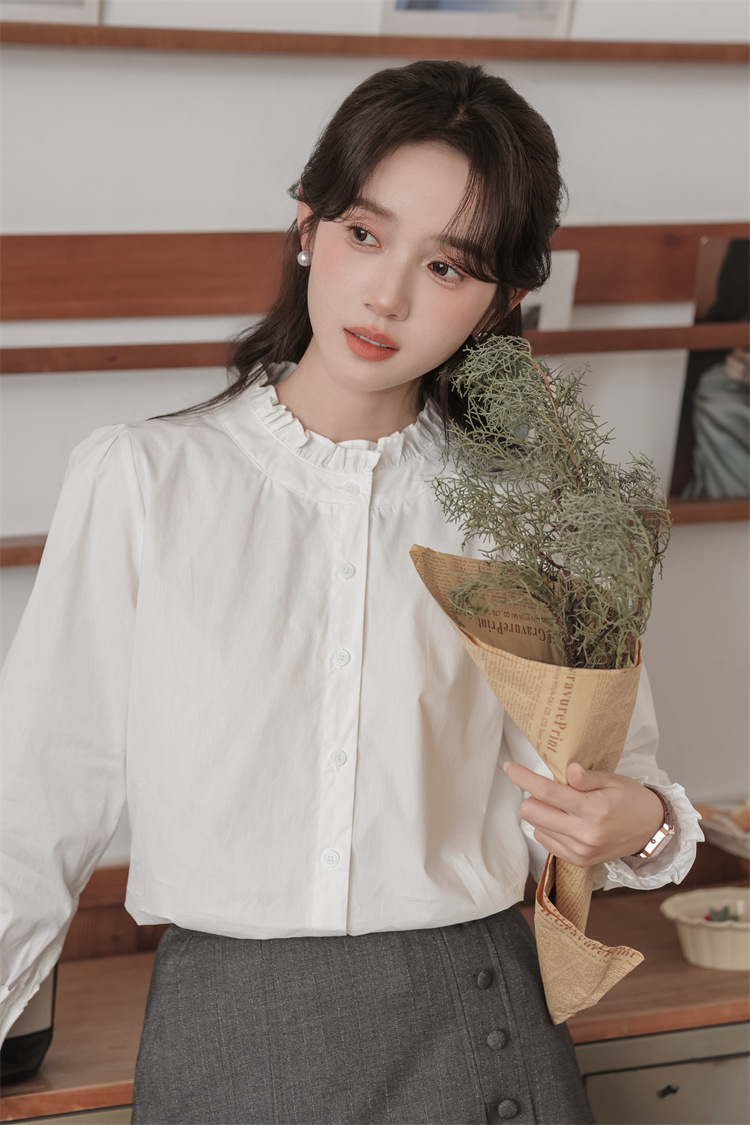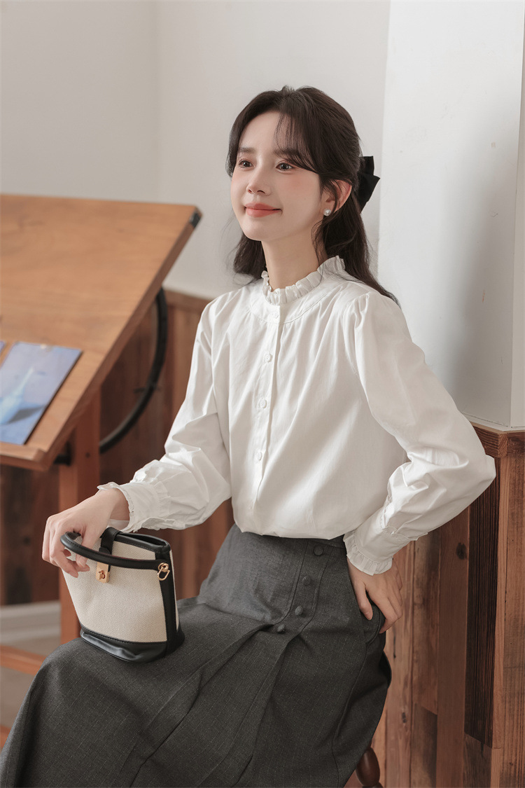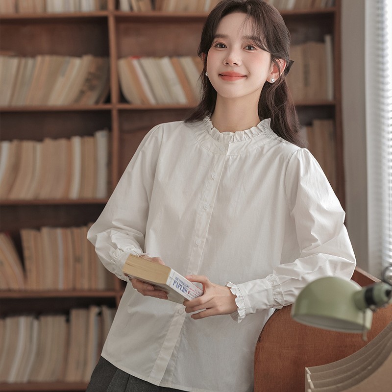 예술적 스타일 귀 칼라 화이트 긴팔 셔츠 여성의 2025 년 봄과 가을 새로운 복고풍 프랑스 탑 루즈 셔츠스토어 가기