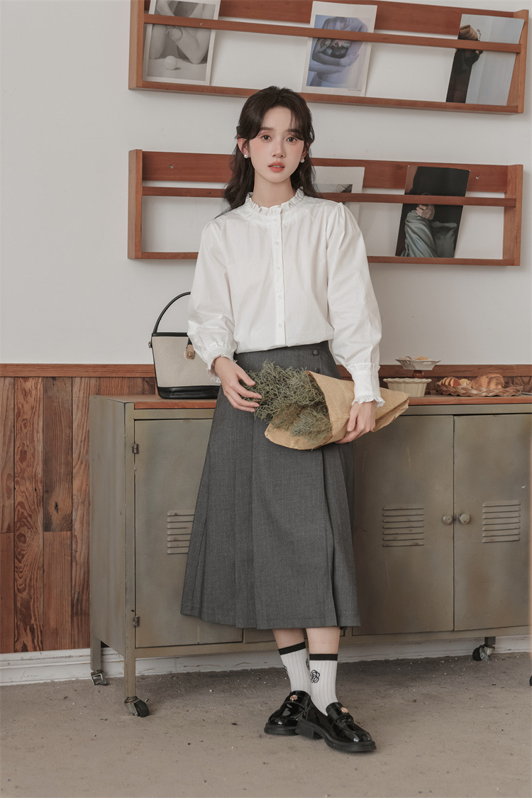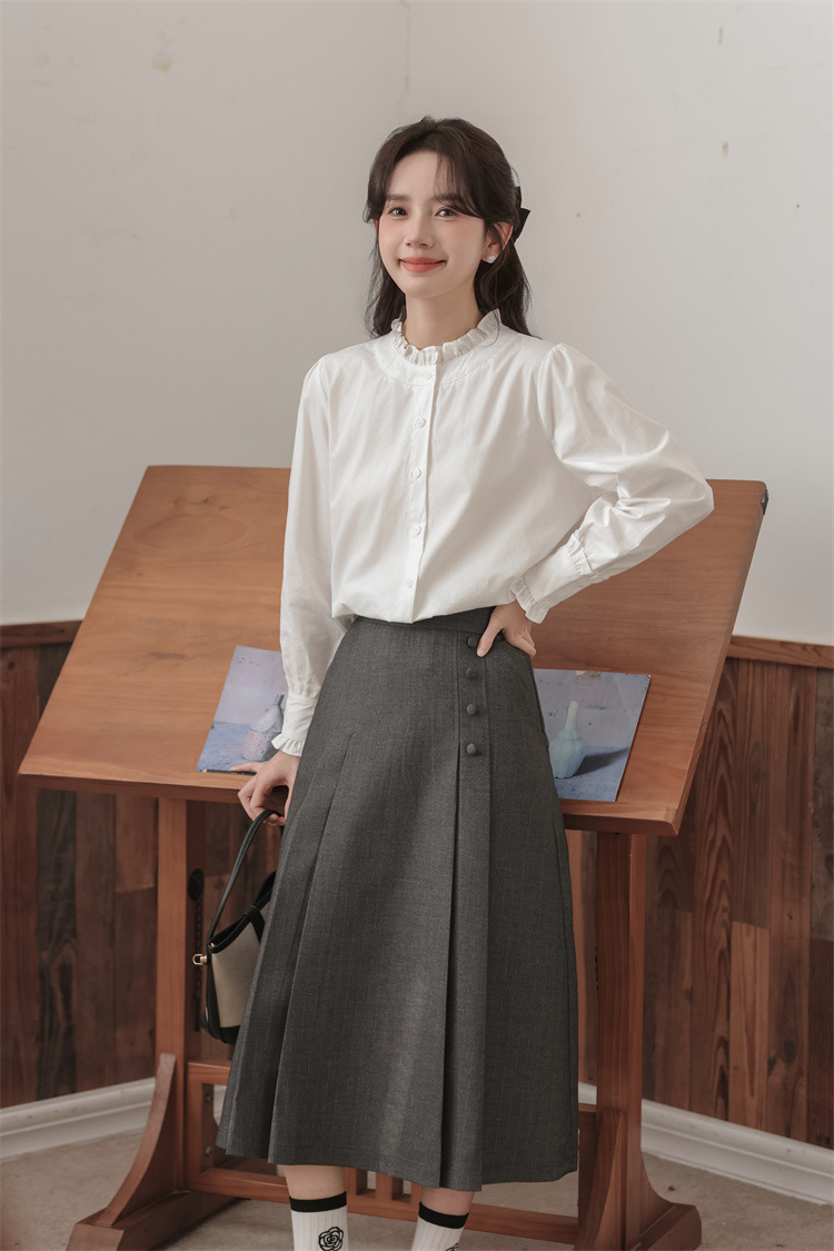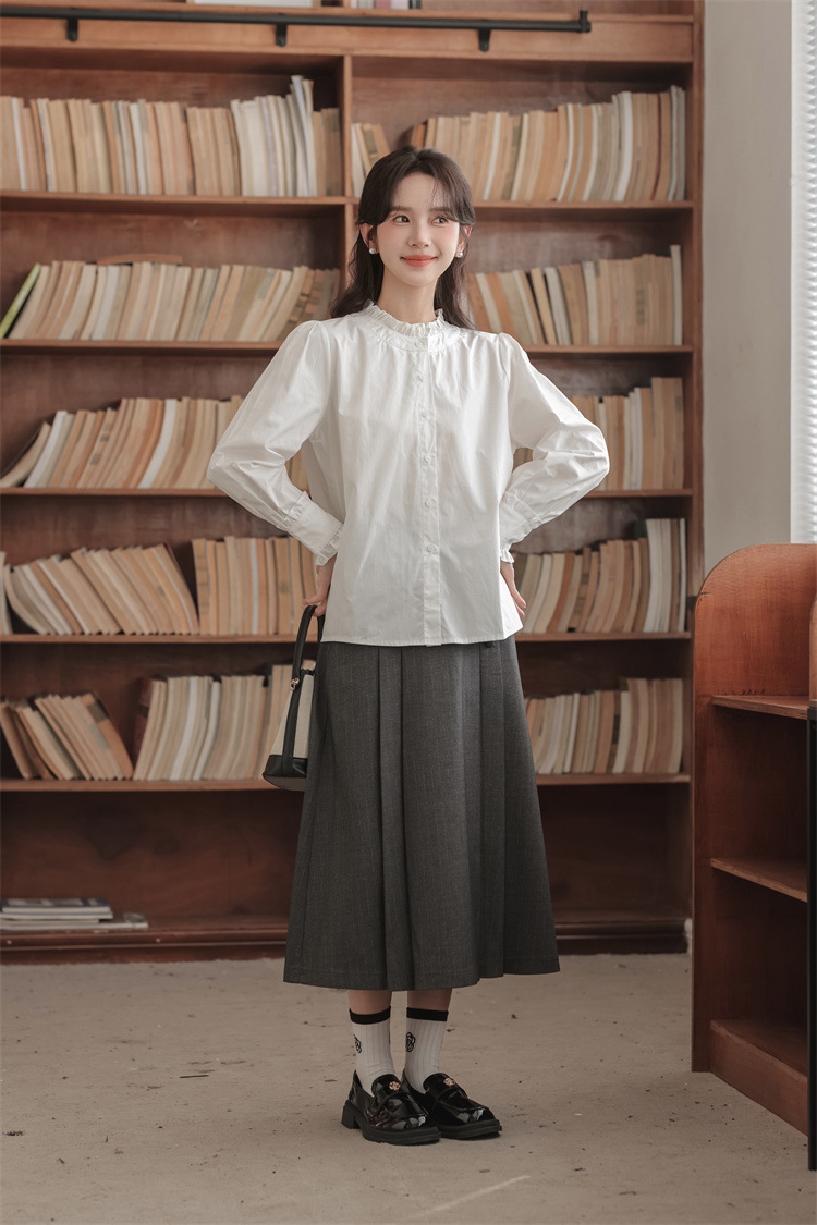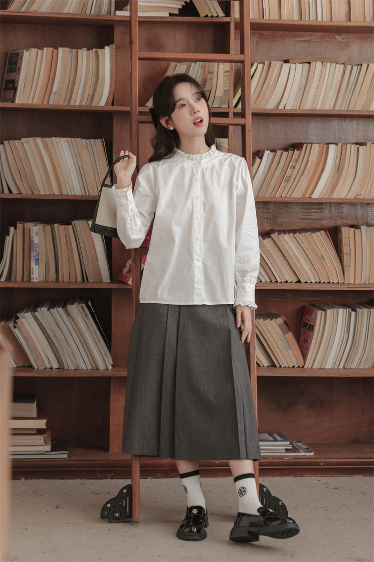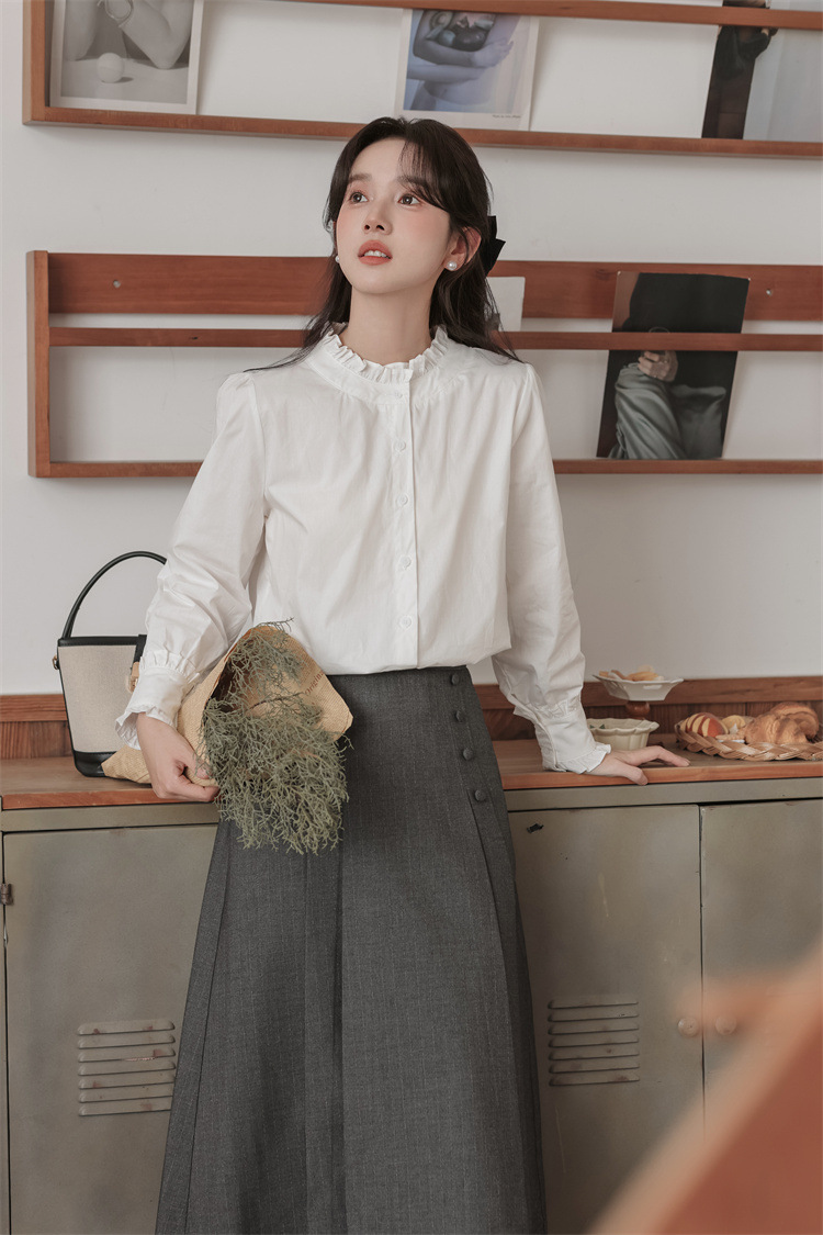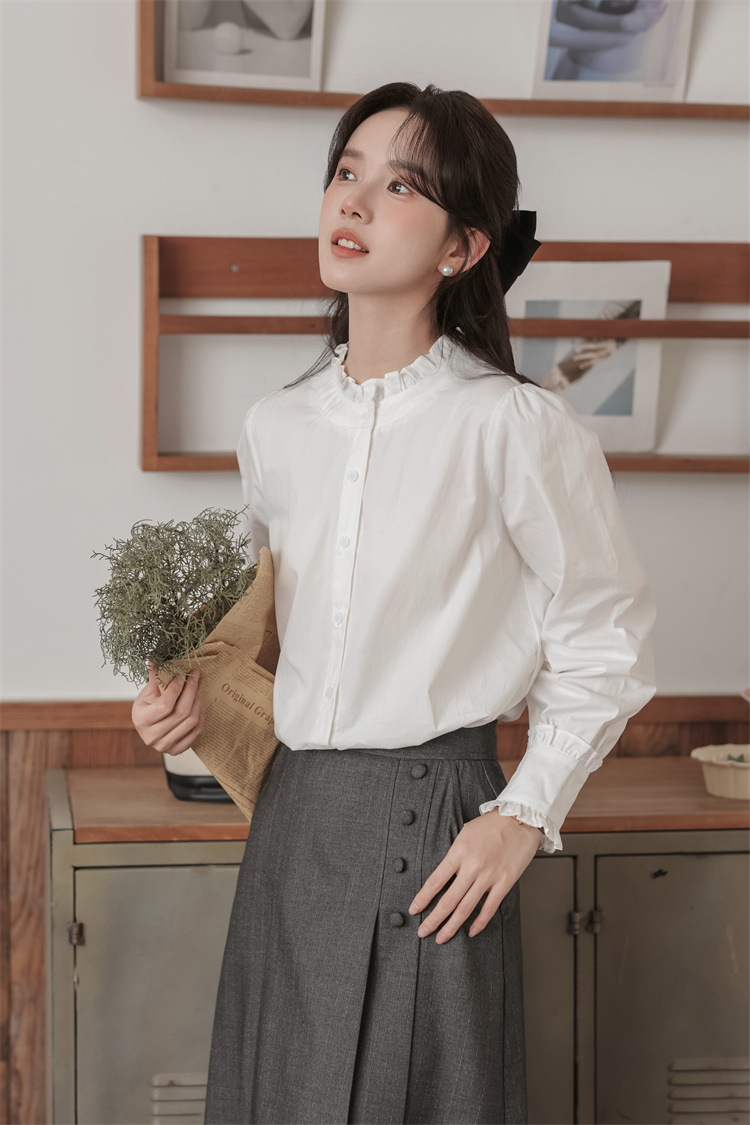 예술적 스타일 귀 칼라 화이트 긴팔 셔츠 여성의 2025 년 봄과 가을 새로운 복고풍 프랑스 탑 루즈 셔츠스토어 가기