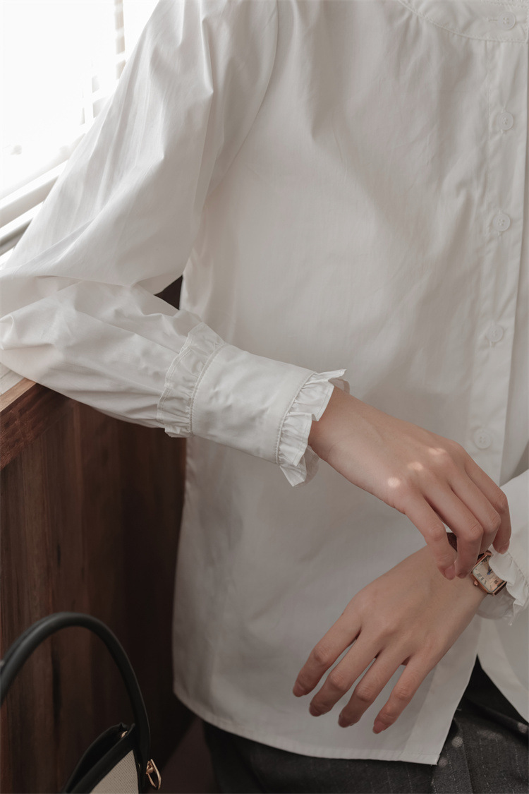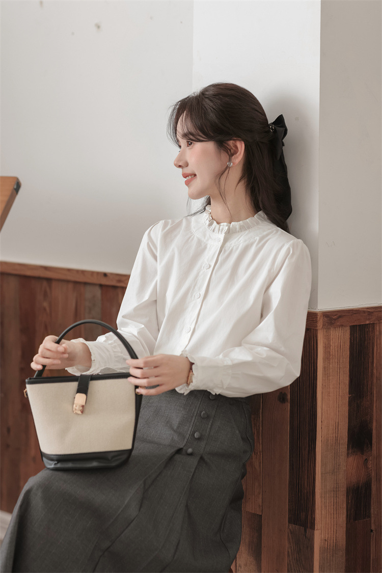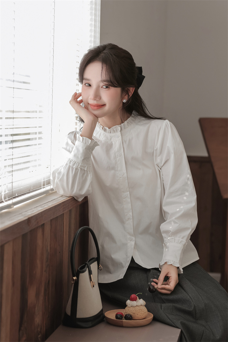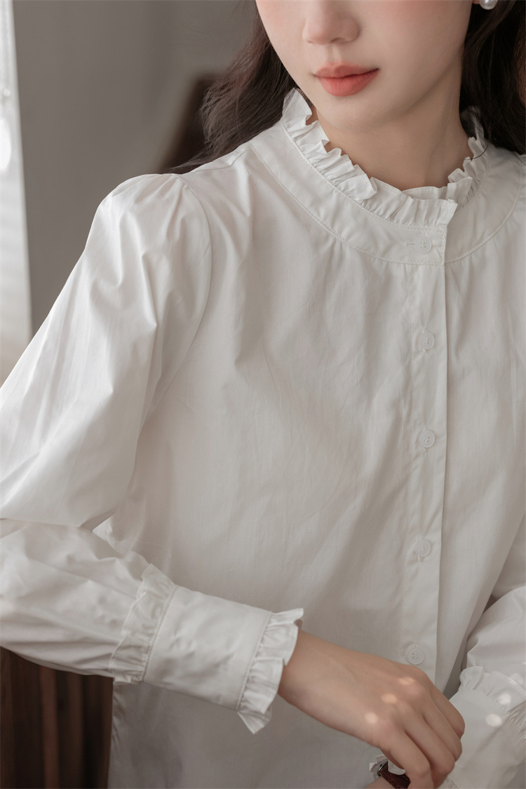 예술적 스타일 귀 칼라 화이트 긴팔 셔츠 여성의 2025 년 봄과 가을 새로운 복고풍 프랑스 탑 루즈 셔츠