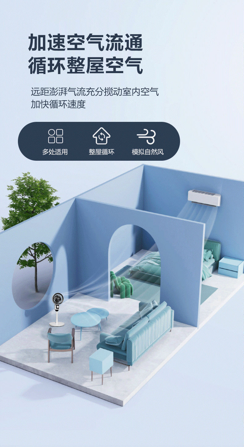 [공장 직접 공급] 양지 새로운 공기 순환 팬 플랫폼 이중 사용 음소거 홈 기숙사 지능형 원격 제어스토어 가기