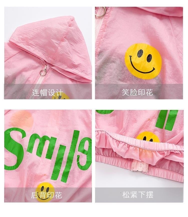 소녀의 선 스크린 의류 여름 얇은 어린이 노란색 웃는 코트 아기 소녀의 여름 옷 어린 소녀를위한 통기성 에어컨 옷