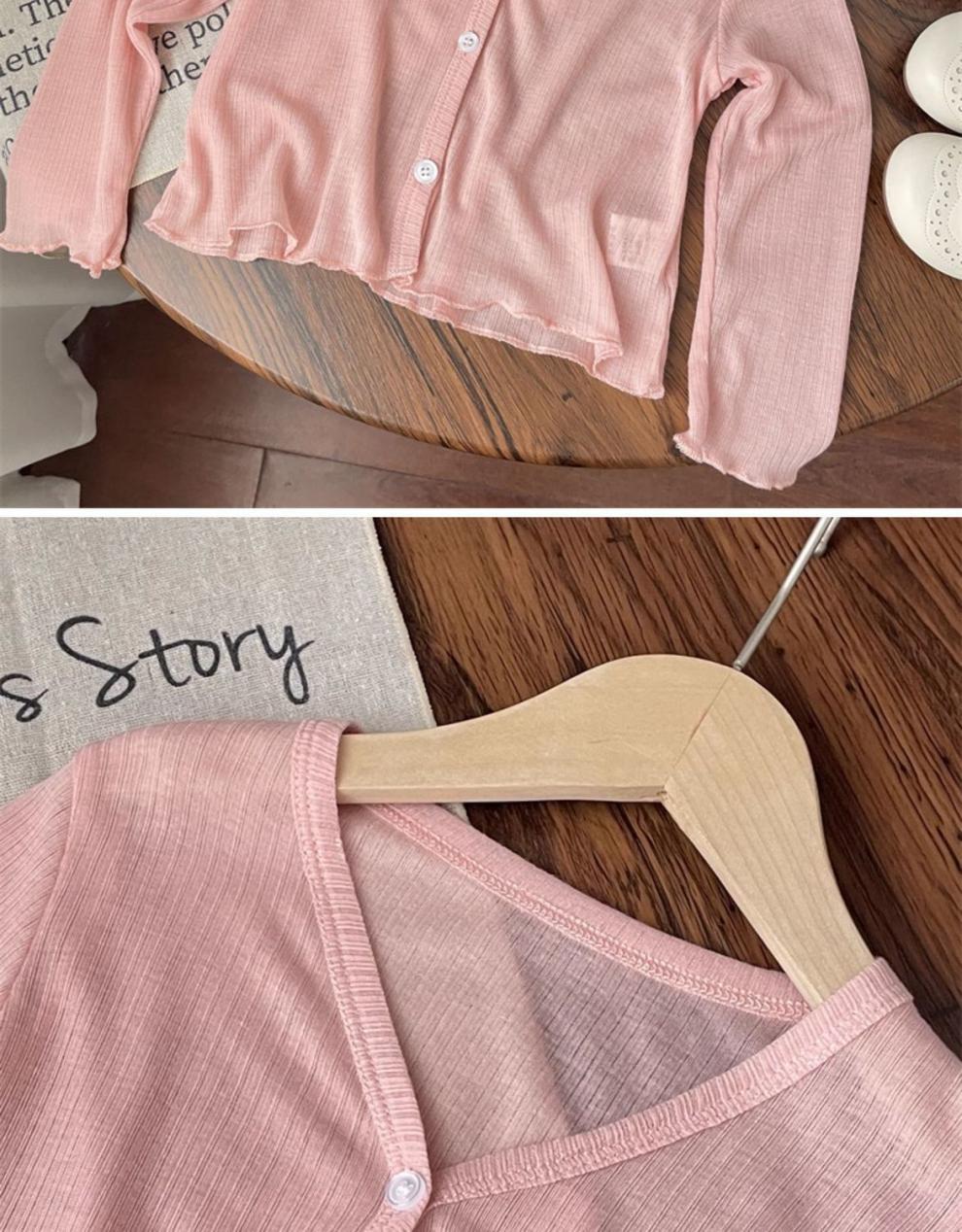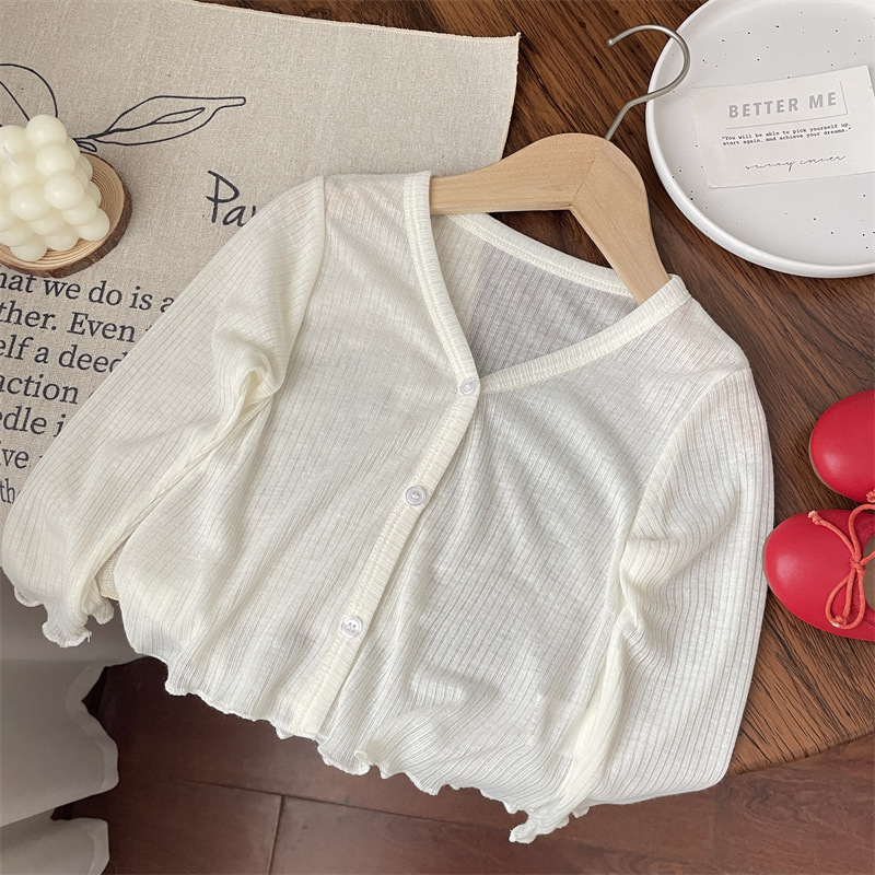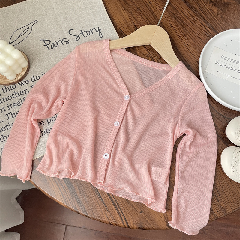 2025 솔리드 컬러 캐주얼 서양 소녀 아기 마스크 태양 보호 의류 얇은 코트 카디건 목도리 에어컨 셔츠