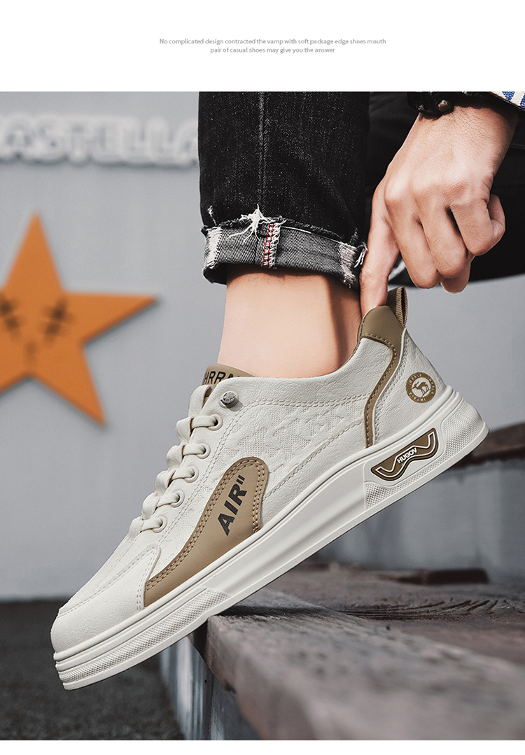 남성 봄과 가을 새로운 TikTok 폭발 캐주얼 보드 신발 가죽 탑 로우 스텝 온 트렌디 신발 학생 스포츠 신발
