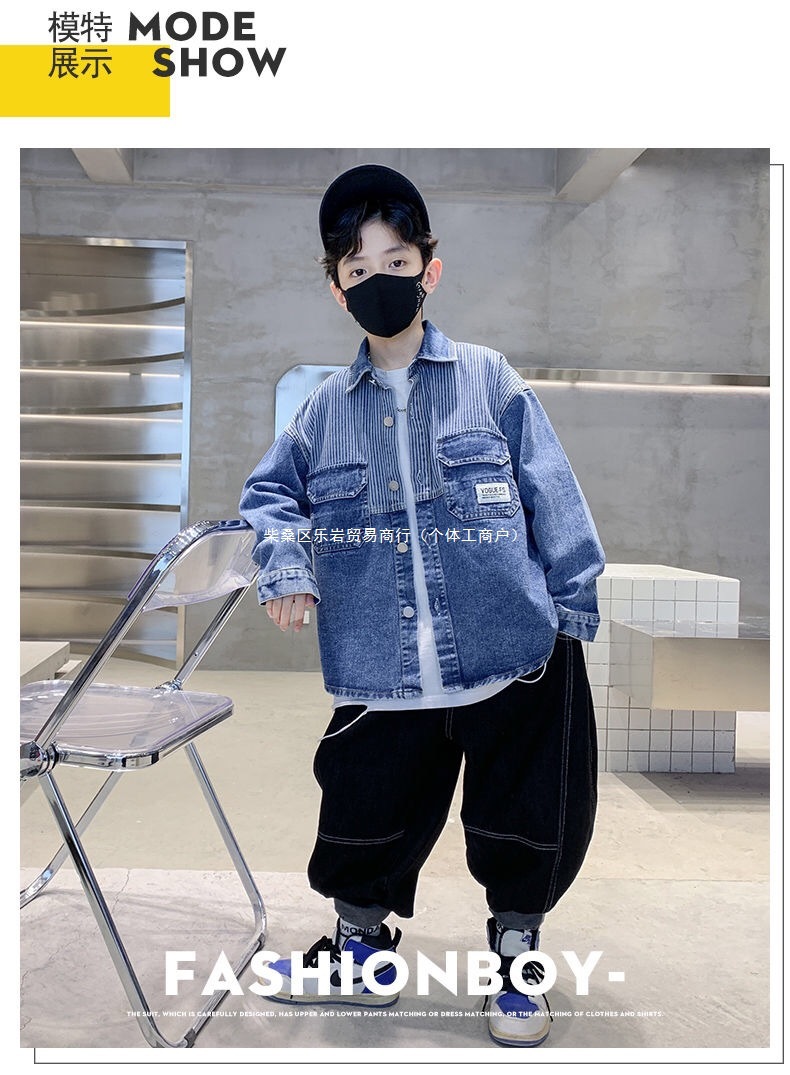 소년 데님 셔츠 2025 봄과 가을 새로운 어린이 긴팔 캐주얼 코트 대형 어린이 얇은 셔츠 카디건 도매스토어 가기