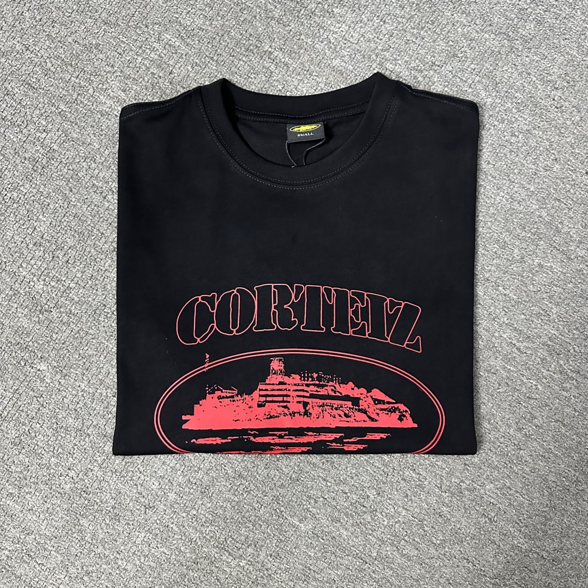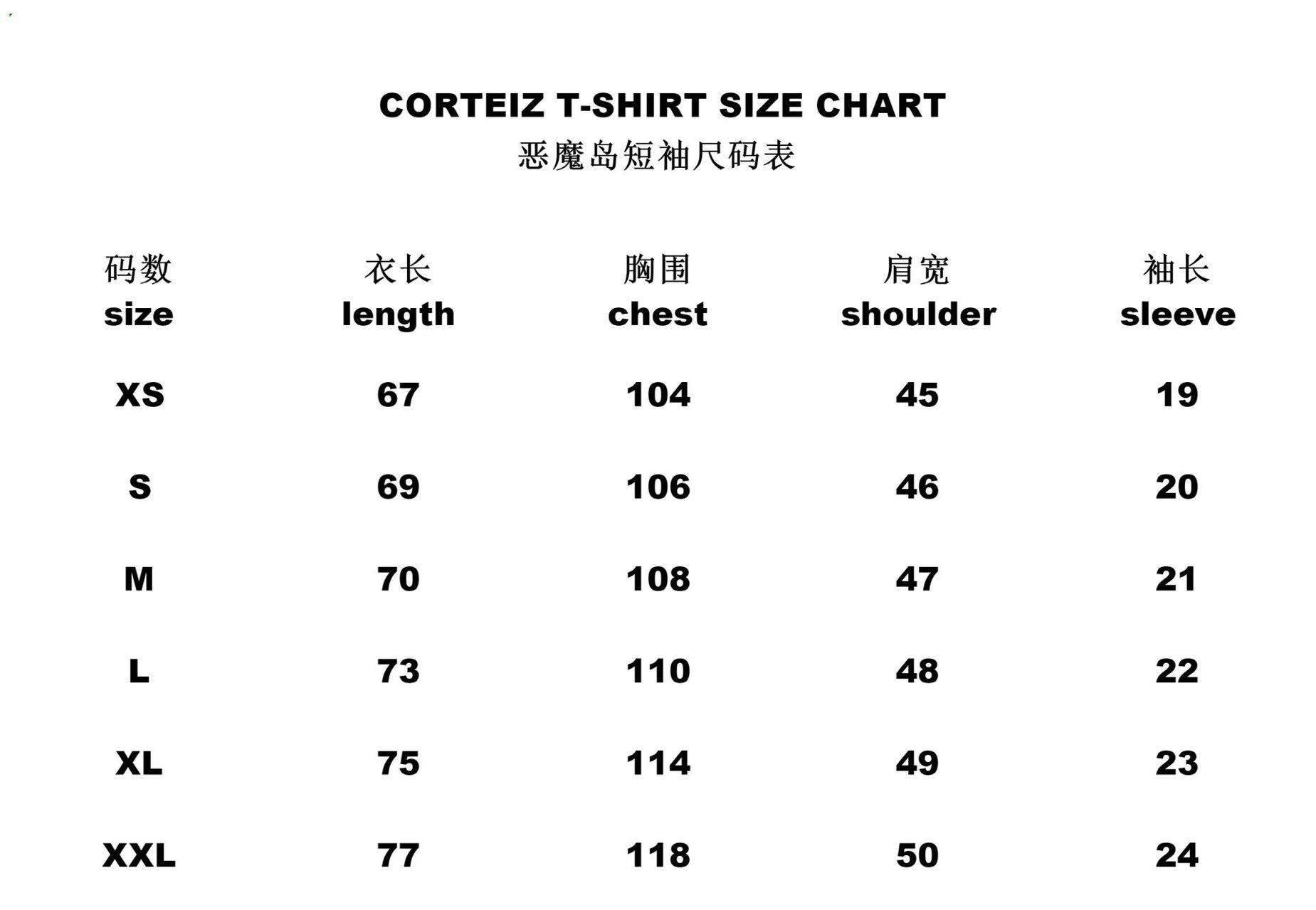 Corteiz Alcatraz 티셔츠 반팔 편지 로고 인쇄 된 유니섹스 더블 원사 캐주얼 반팔 유니섹스스토어 가기