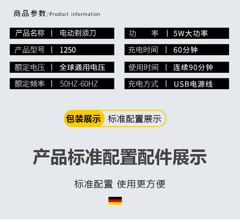 • 표준 디지털 디스플레이 + 코털 제거제 + 구레나룻 제거제 + 페이셜 클렌징 브러시 + 예비 칼날