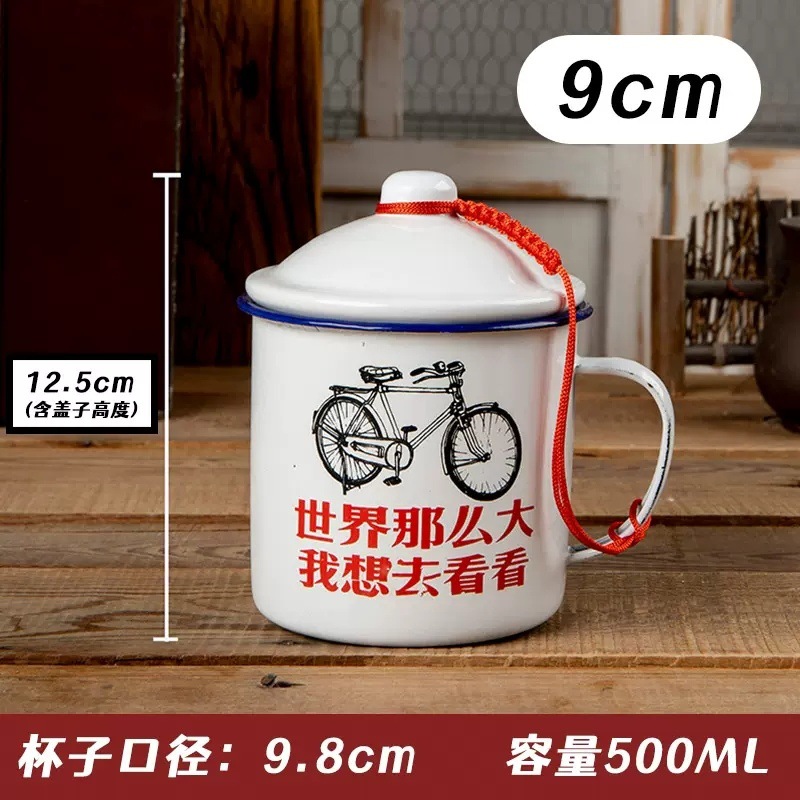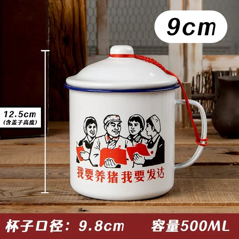 클래식 향수 에나멜 컵 아이언 티 탱크 뚜껑 대형 오피스 호텔 꽃과 함께 구식 더블 행복 웨딩 워터 컵