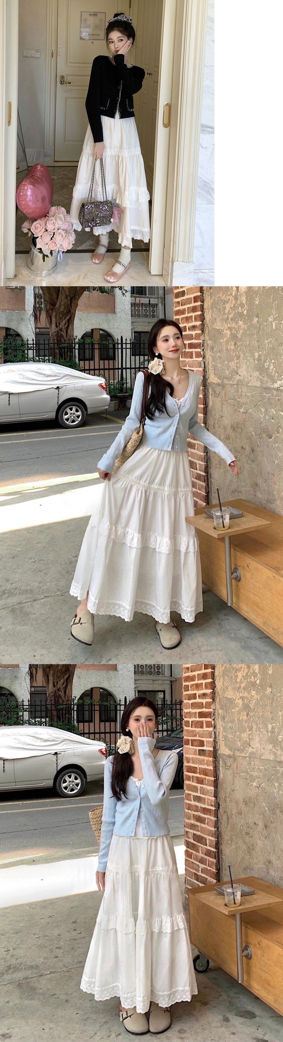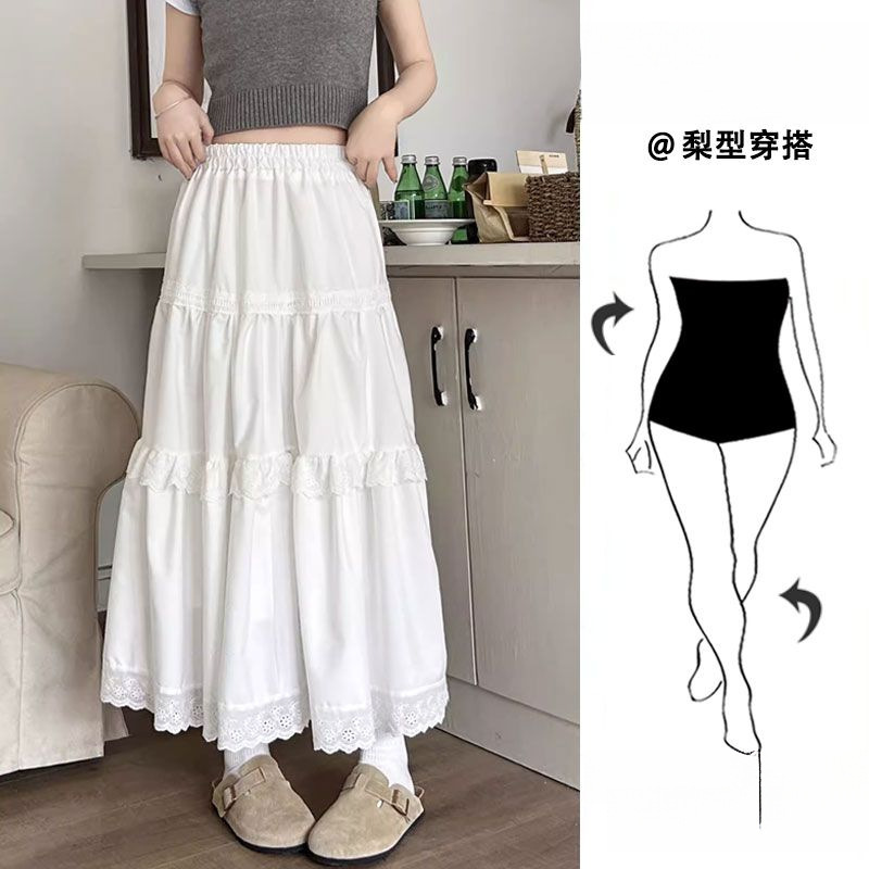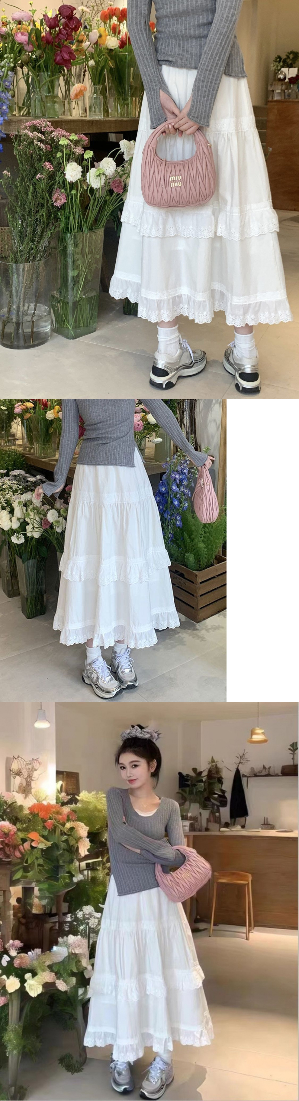 화이트 케이크 스커트 봄과 여름 작은 높은 허리 슬리밍 레이스 퍼프 미디 스커트 A-라인 스커트 우산 스커트스토어 가기