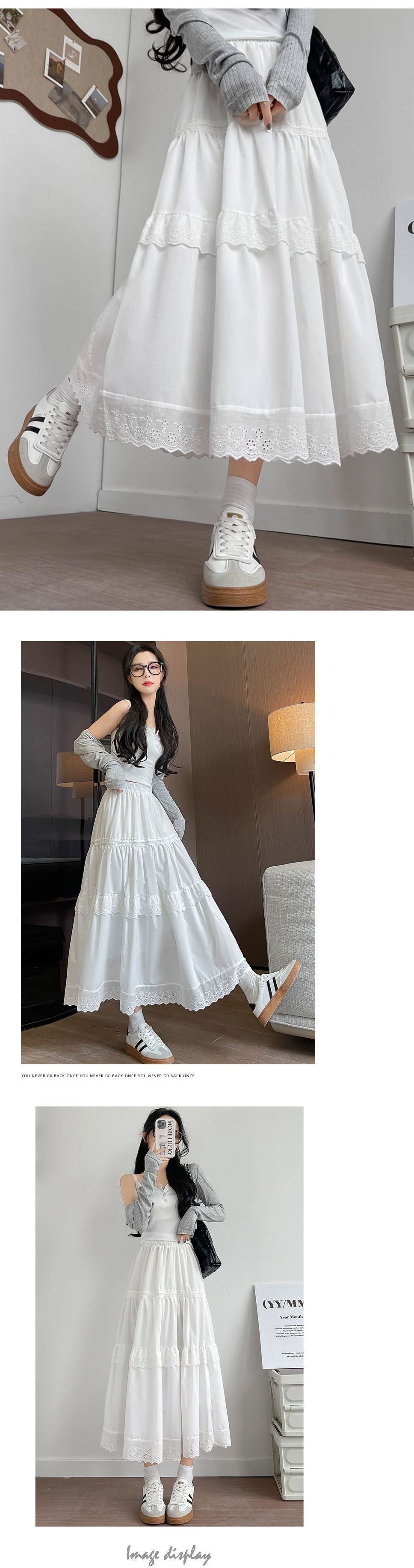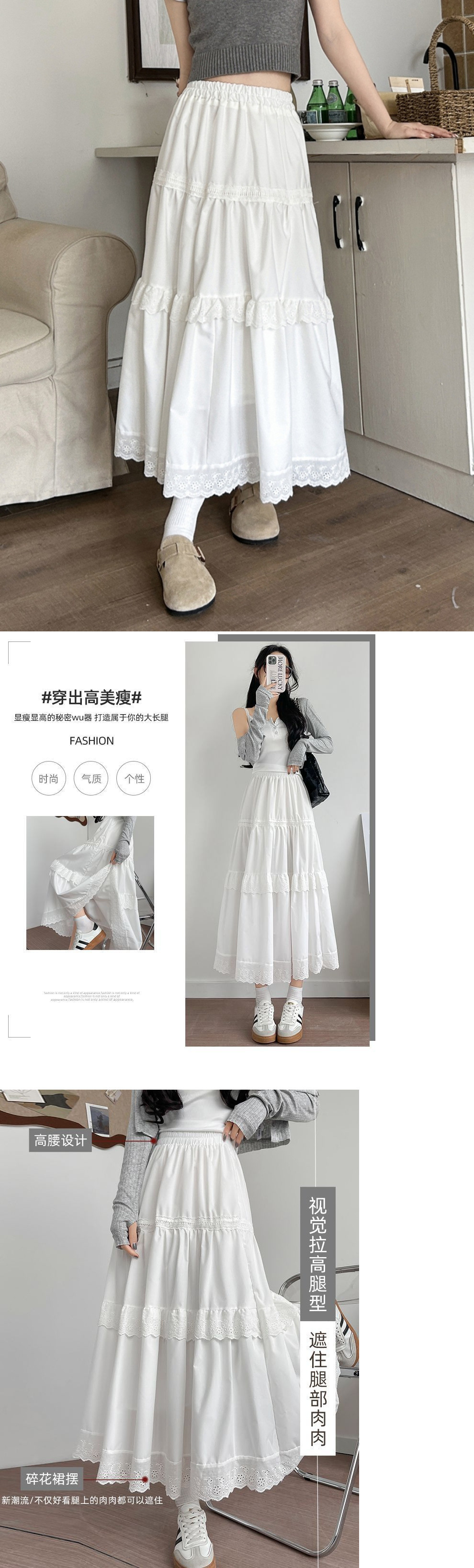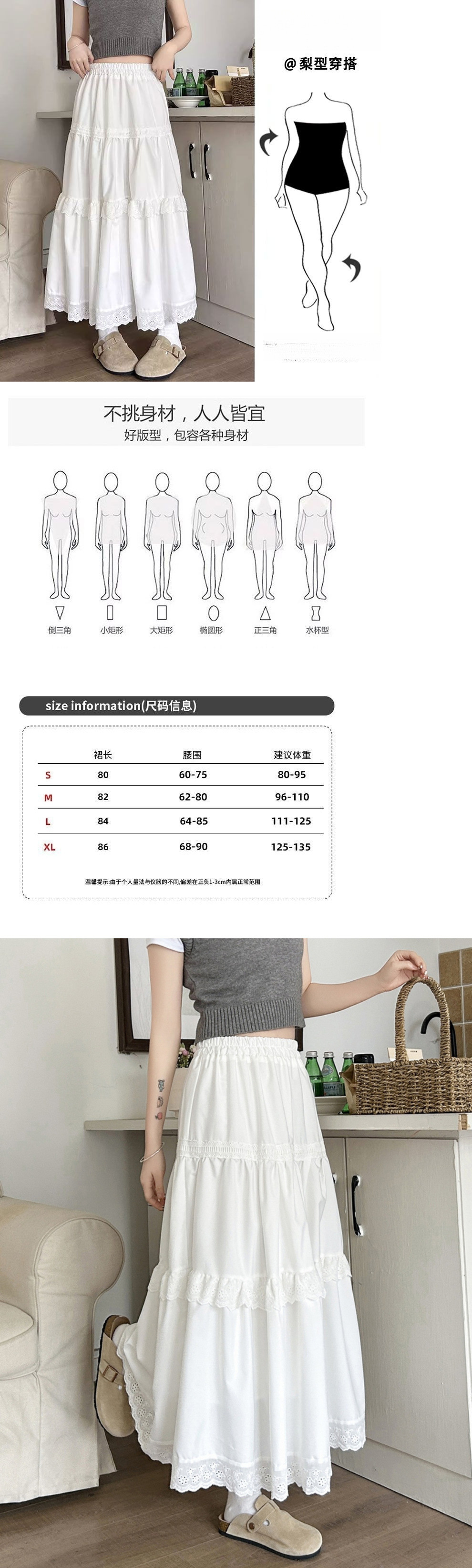 화이트 케이크 스커트 봄과 여름 작은 높은 허리 슬리밍 레이스 퍼프 미디 스커트 A-라인 스커트 우산 스커트