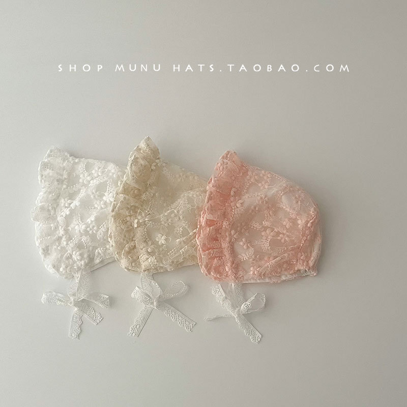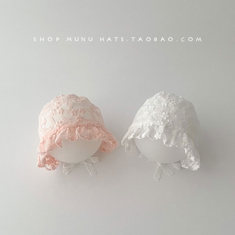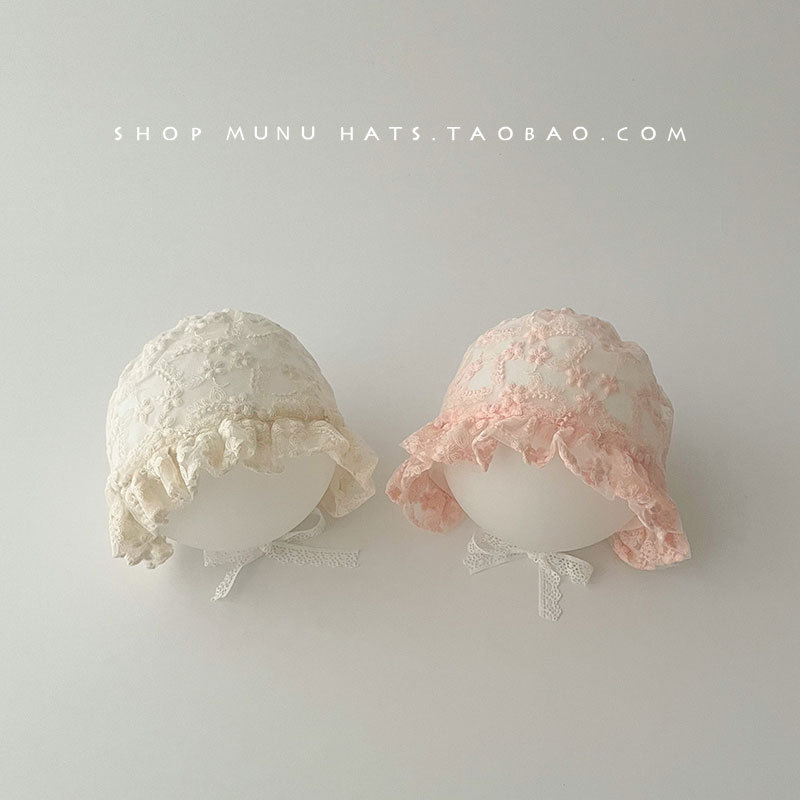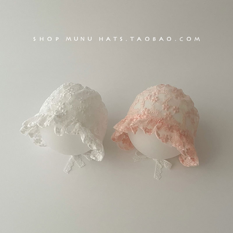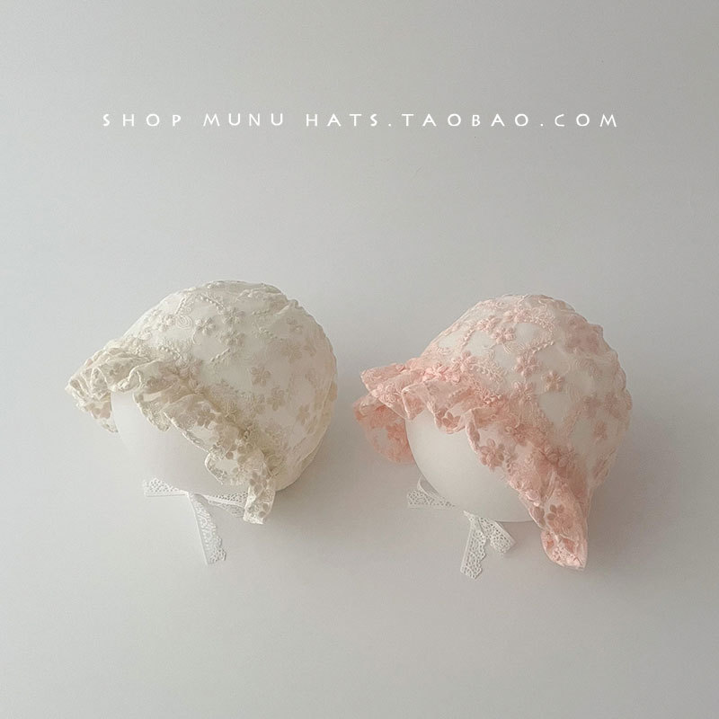 아기 모자 봄과 여름 얇은 레이스 코트 모자 아기 레이스 공주 모자 여행 태양 모자 귀 보호 모자 한국어스토어 가기