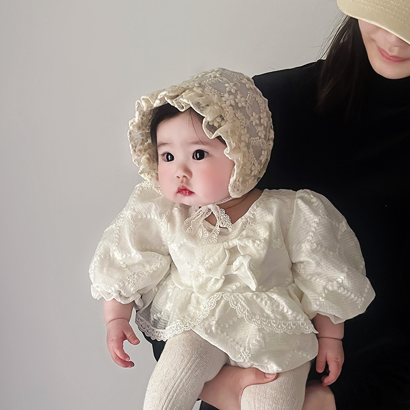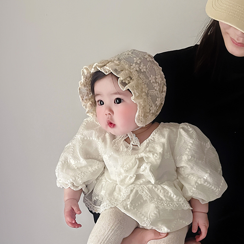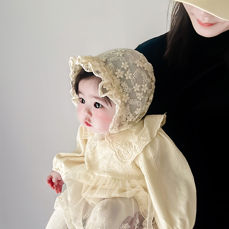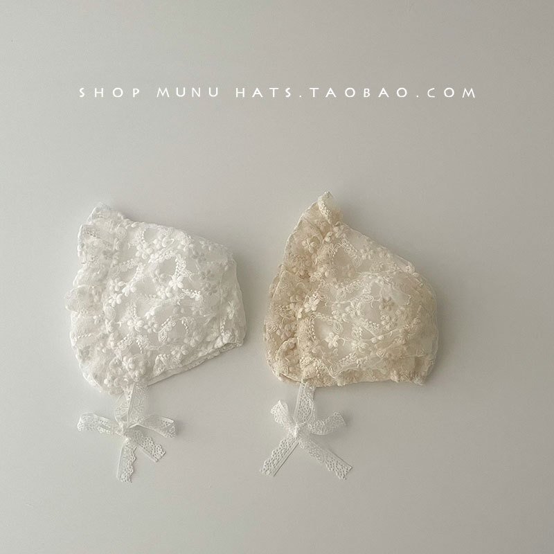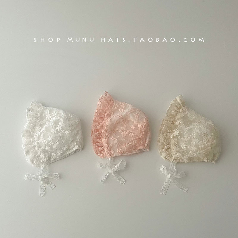 아기 모자 봄과 여름 얇은 레이스 코트 모자 아기 레이스 공주 모자 여행 태양 모자 귀 보호 모자 한국어스토어 가기