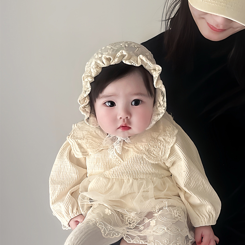 • 더블 레이어 레이스 팰리스 화이트+0-1세(머리 둘레 42-48cm)+프리 사이즈