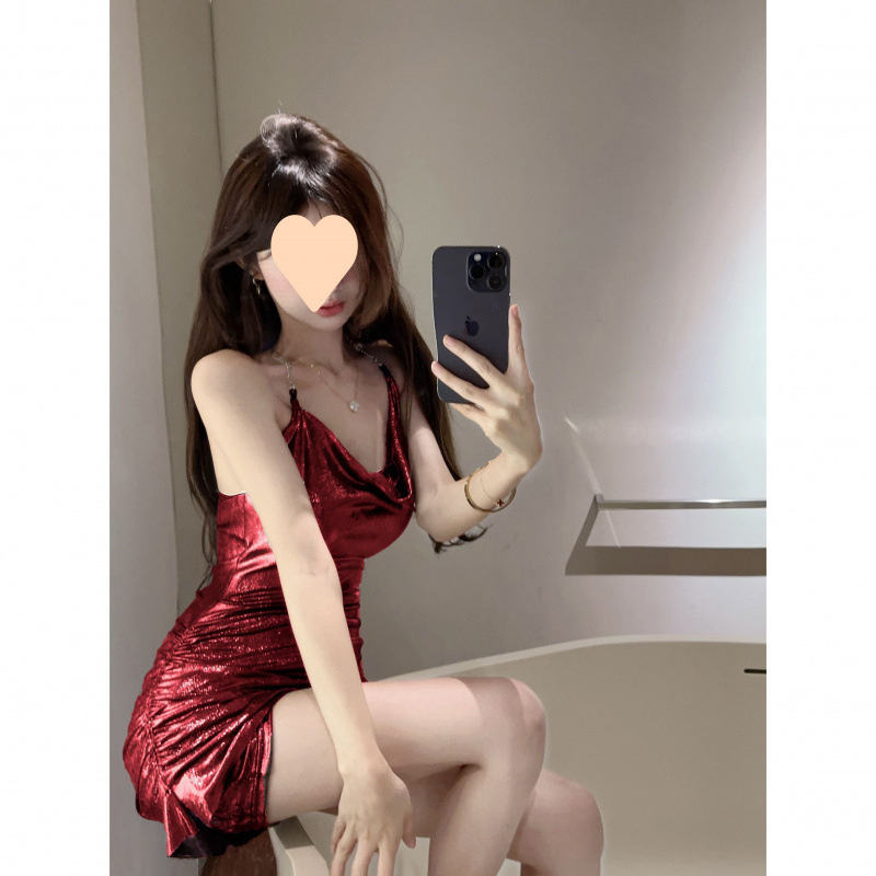 광택 칼라 꽉 꽉 찬 여름 목 원피스 민소매 엉덩이 치마 짧은 치마 새 스타일 여성 우아한 틈새스토어 가기