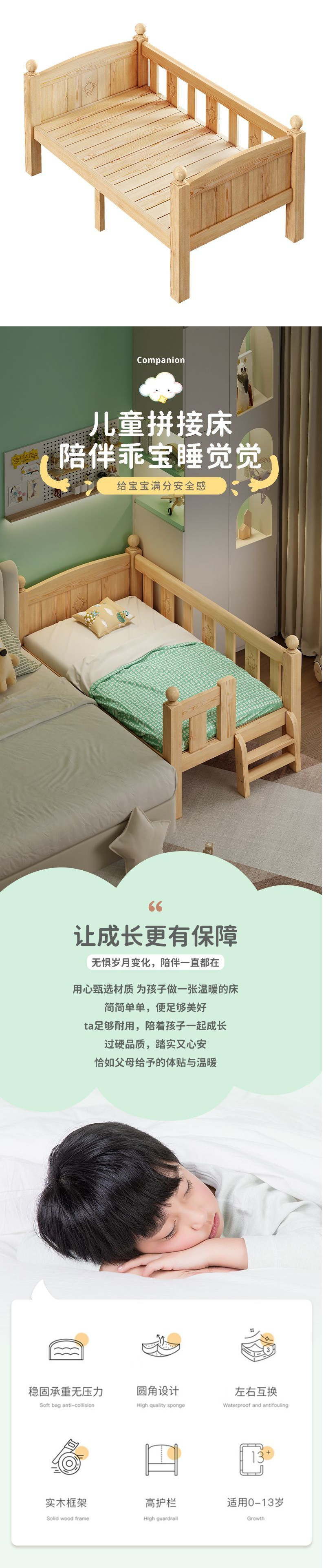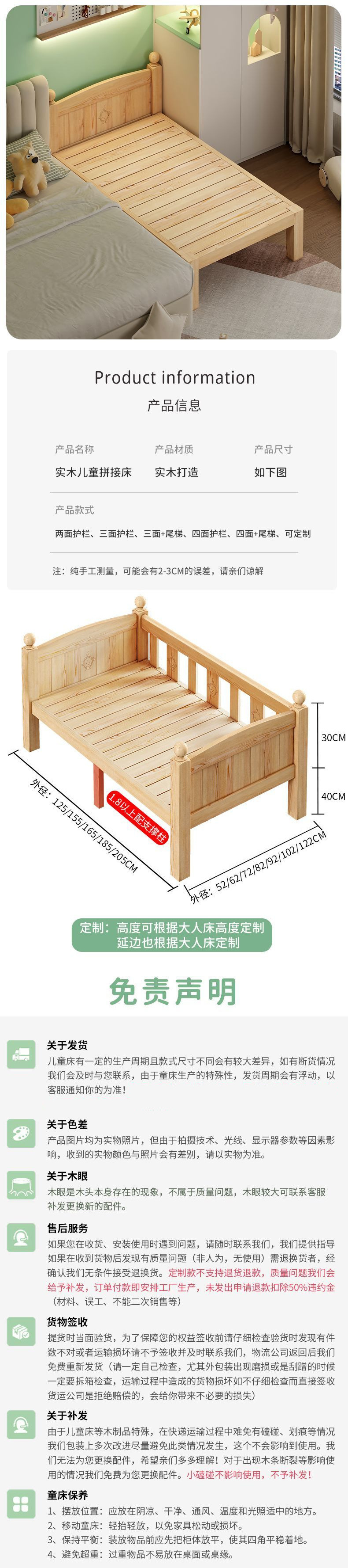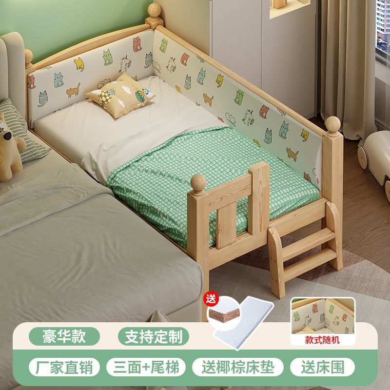 아기 접합 침대 폭 넓은 침대 성인 단단한 나무 침대 아기 침대 어린이 싱글 침대 6 ~ 12 세 어린이 접합 침대스토어 가기