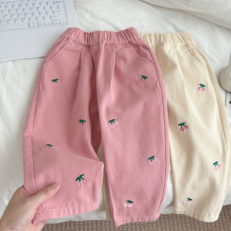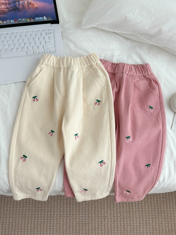 [1848 명 칭찬] 어린이 바지 봄과 가을 2025 새로운 외국 스타일 아이보리 캐주얼 바지 면화 소녀