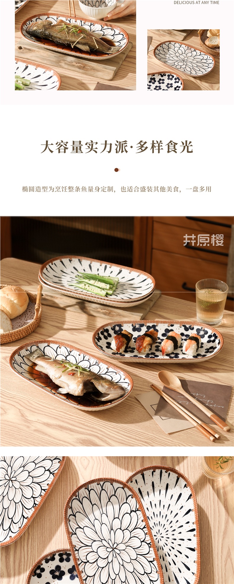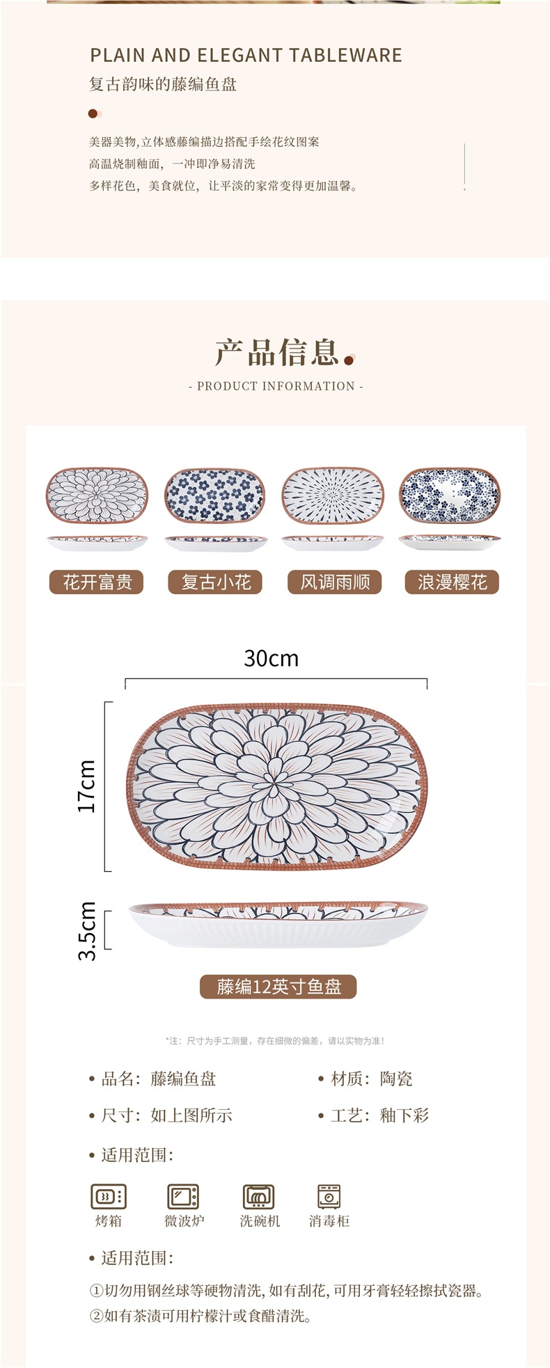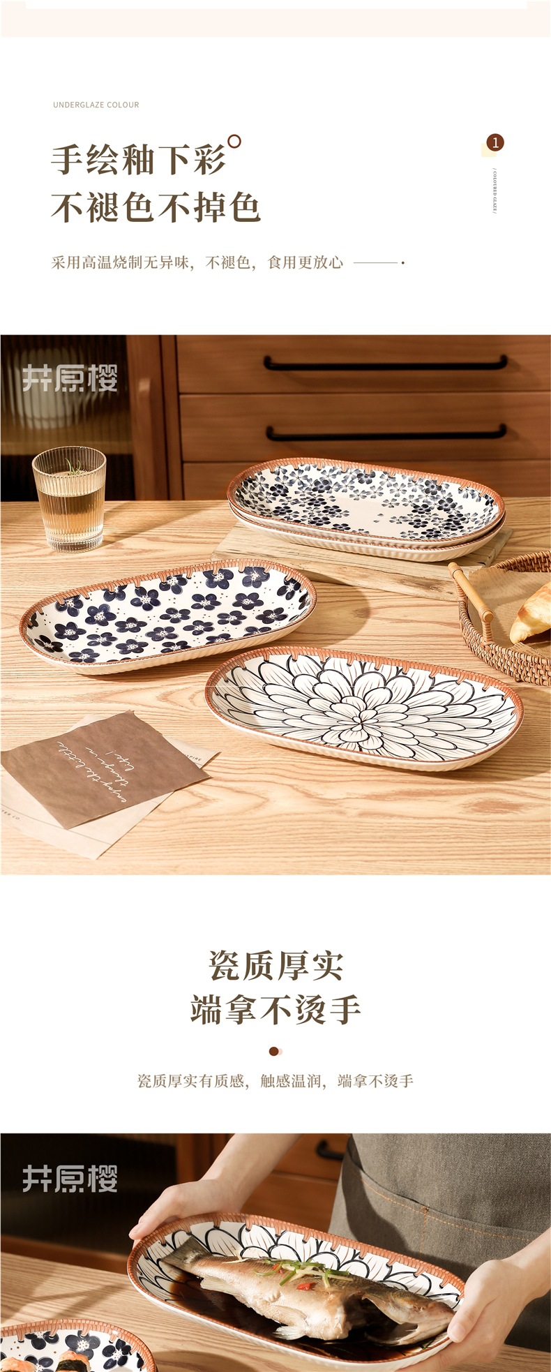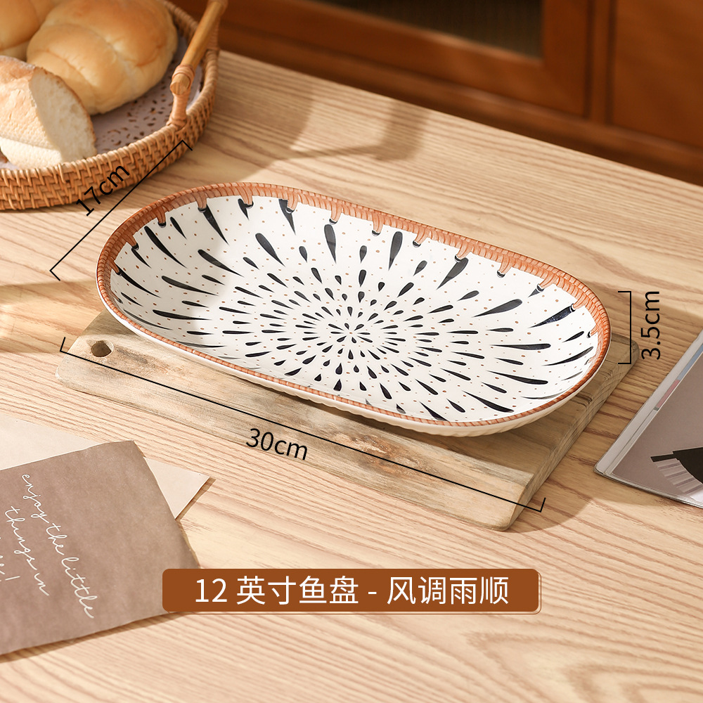 어판 가정용 생선 접시 중국 세라믹 플레이트 창조적 인 중국 스타일 2024 새로운 타원형 찐 생선 접시