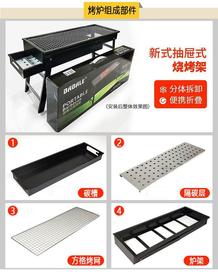 • 인출식 오븐 + 스테인레스 스틸 스트립 메쉬 + 바베큐 숯 - 패키지 3: 표준 오븐 + 도구 7개 [핫 세일]