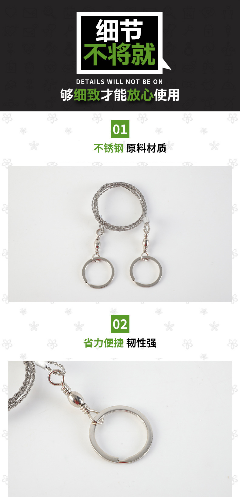 체인 손으로 본 와이어 가정용 휴대용 소형 수제 야외 야생 생존 야간 낚시 와이어 도매스토어 가기