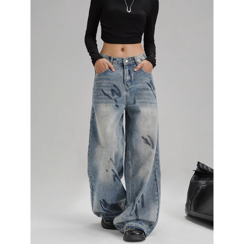 빈티지 세탁 그라디언트 하이 센스 청바지 여성용 2025 봄 뉴 스트리트 바이브 스타일 스트레이트 레그 팬츠 트렌디스토어 가기