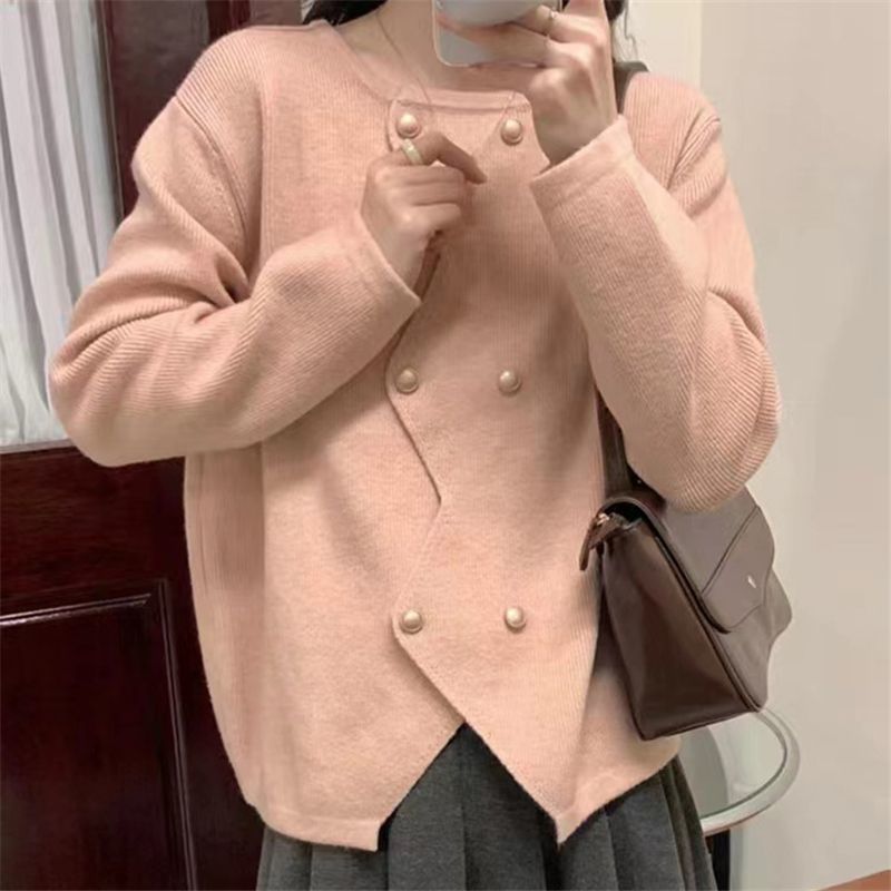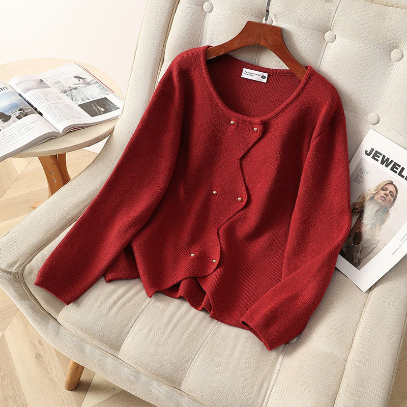 새해 붉은 전쟁 가운 스웨터 패션 플러스 사이즈 통통한 단색 샤넬 니트 카디건 더블 브레스트 봄과 가을 탑