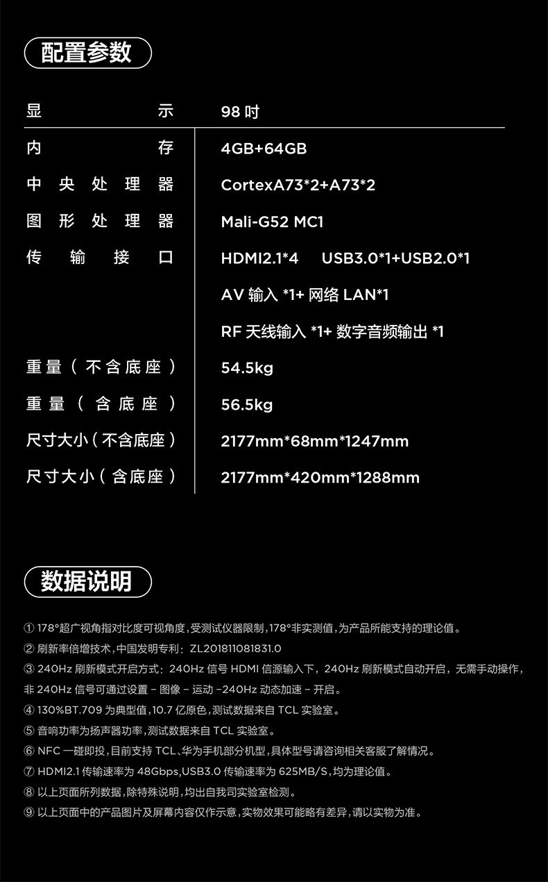 TC.L电视机98G60E无开机广告98英寸专属系统全通道4K显示屏