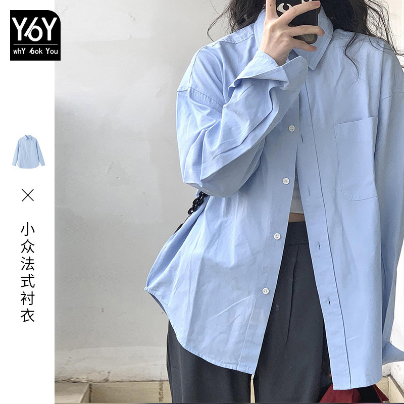 2025 새로운 봄 블루 셔츠 여성용 프랑스 재킷 셔츠 디자인 틈새 긴 소매 프랑스 Chic Top스토어 가기