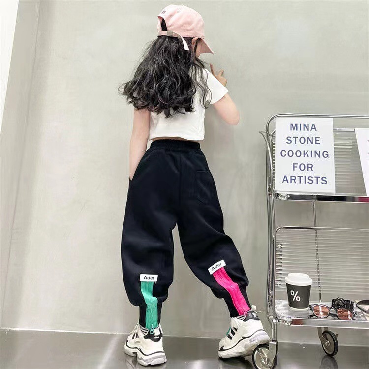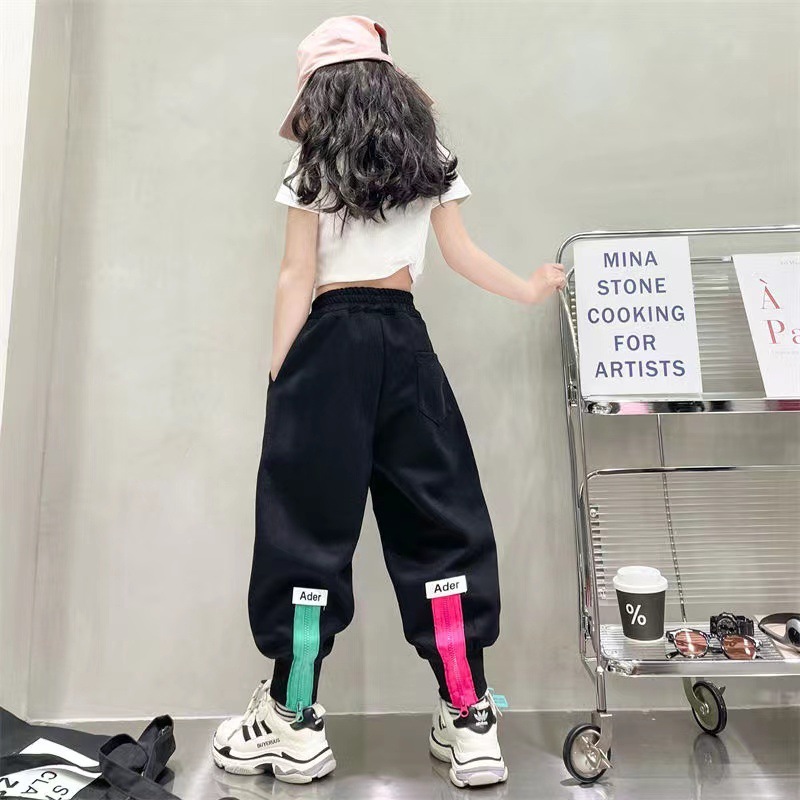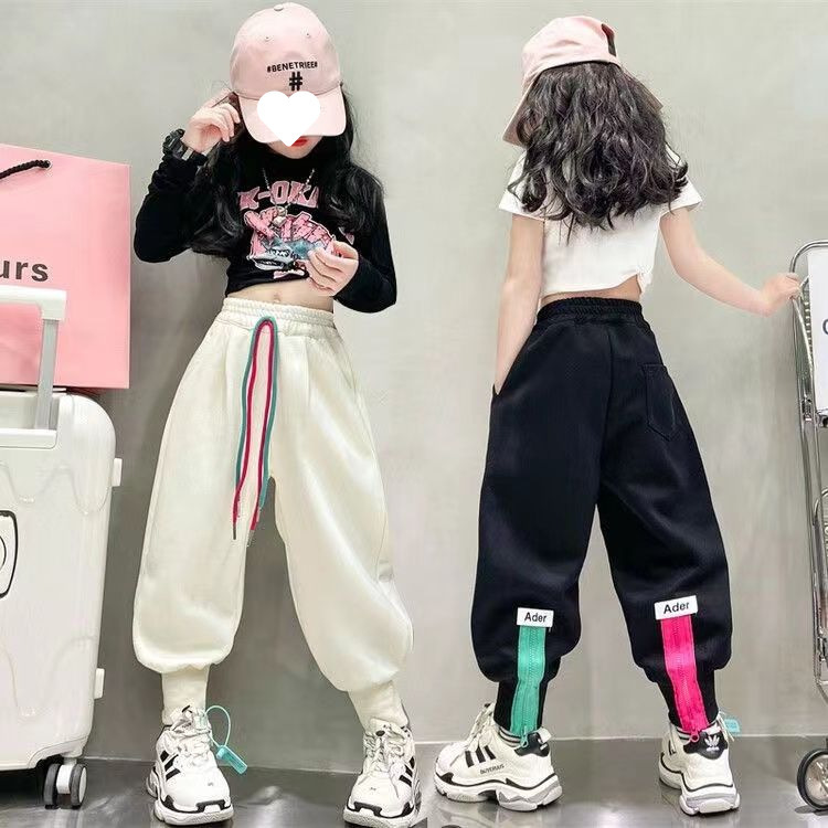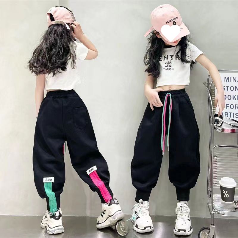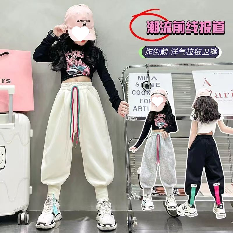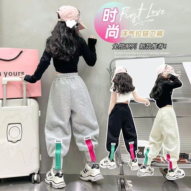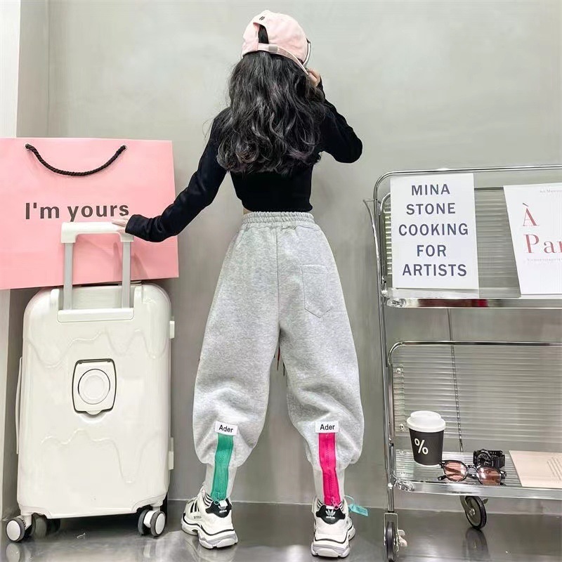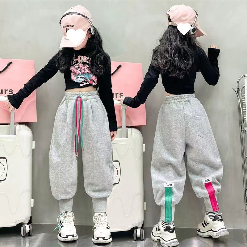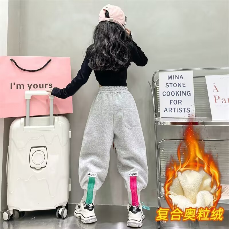 소녀 겨울 캐주얼 바지 2025 새로운 스타일 유행 느슨한 기모 큰 어린이를위한 두꺼운 발 바지스토어 가기