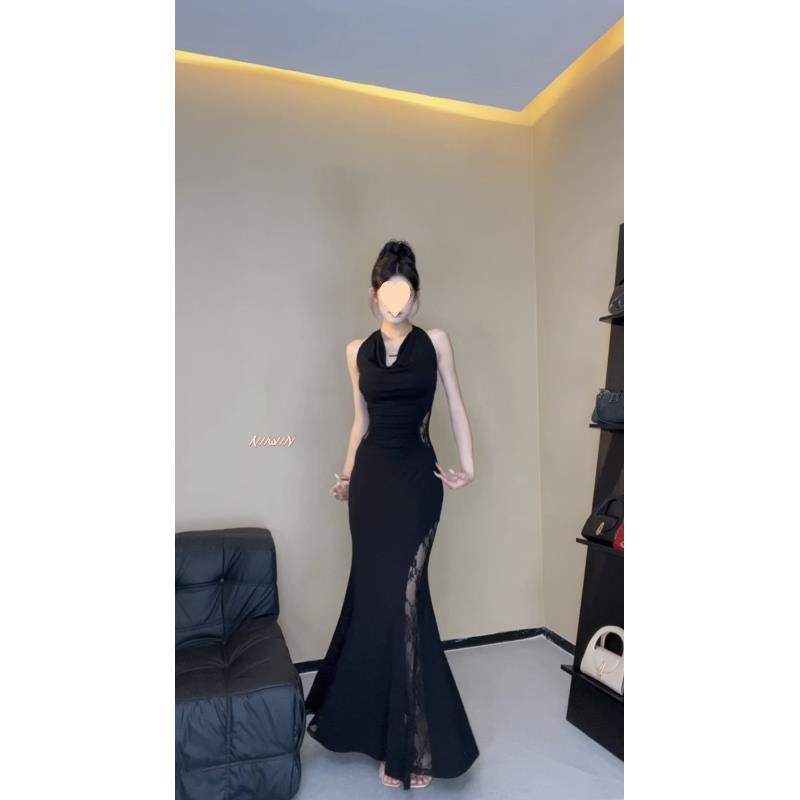 블랙 레이스 할로우 아웃 고급 섹시 청삼 Fishtail 원피스 우아한 슬림핏 여름 중국 스타일스토어 가기