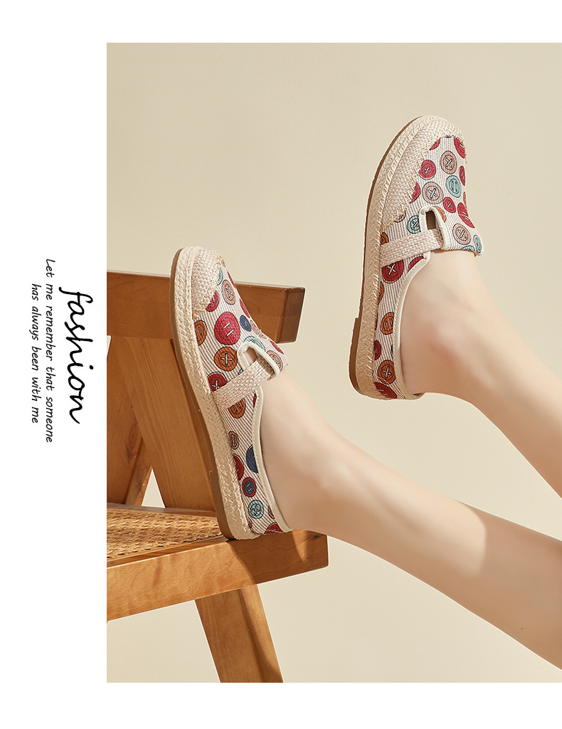 오래 된 베이징 천 신발 여성의 여름 새로운 부드러운 바닥 슬리퍼 얕은 입 캐주얼 트렌디 게으른 신발 슬립 온 여성용 하프 슈즈