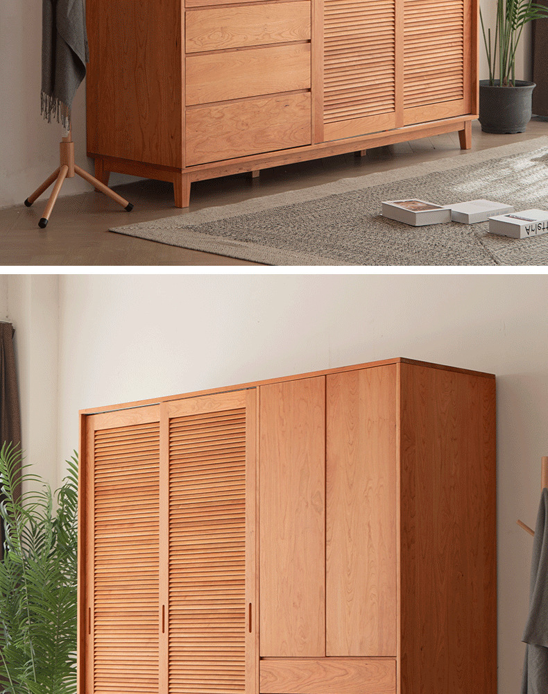 북유럽 일본식 체리 우드 옷장 풀 솔리드 우드 침실 가정용 대용량 옷장 일본식 Bmane 푸시-풀 옷장스토어 가기
