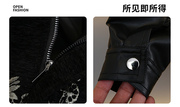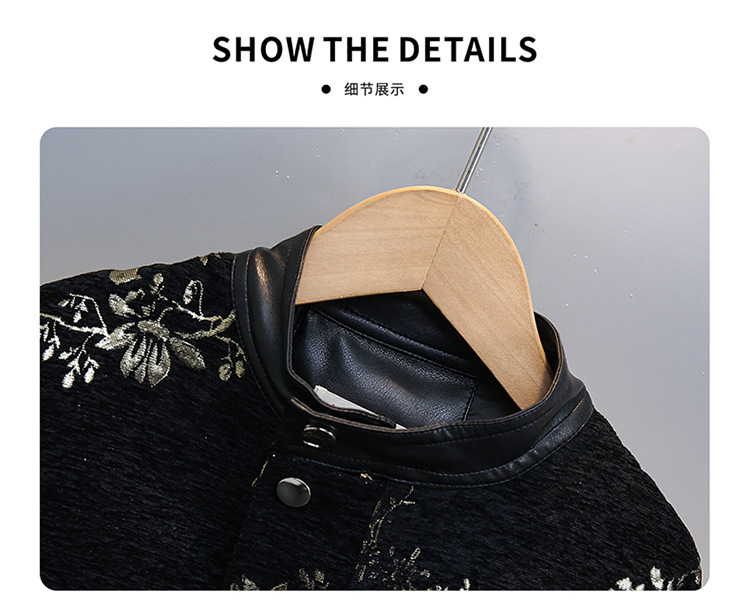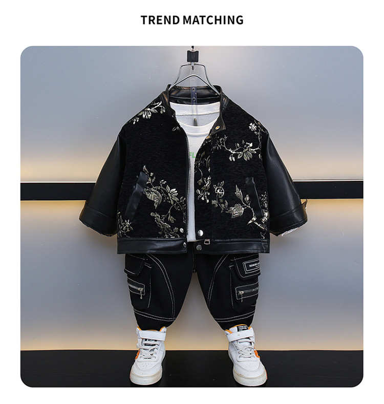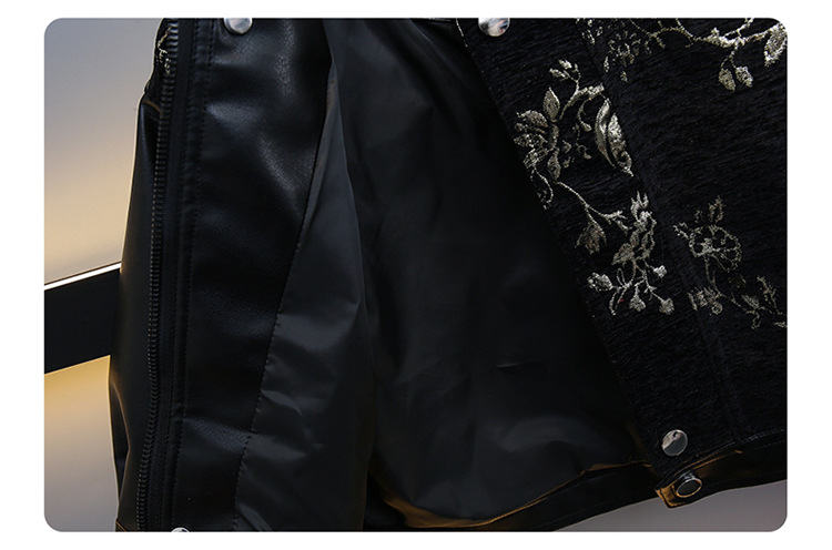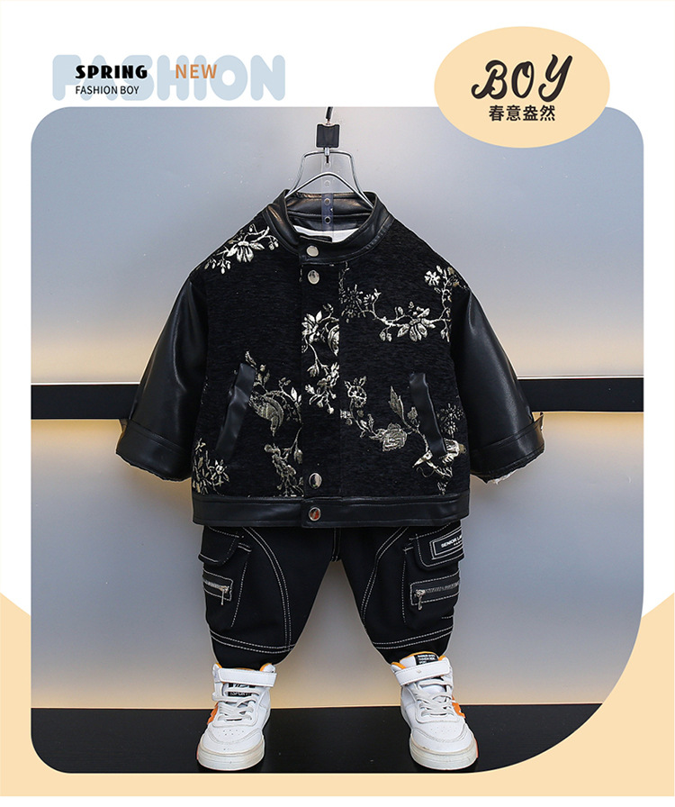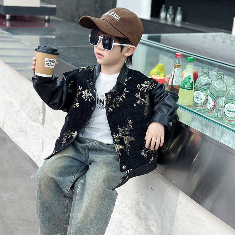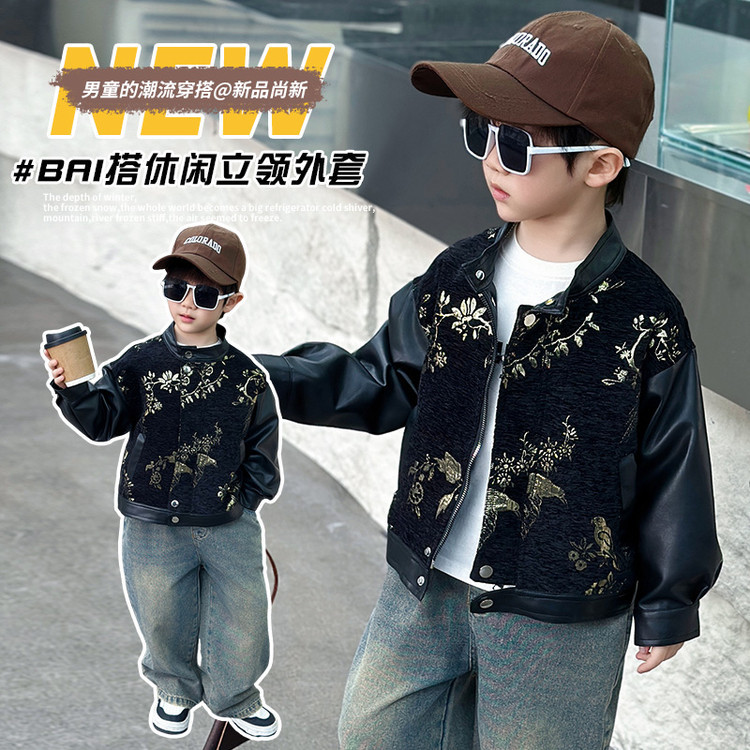 7696 소년 양털 가죽 재킷 스플 라이스 재킷 가을, 겨울 유행 2025 새로운 어린이 중국 스타일 스탠드 칼라 PU 가죽 재킷스토어 가기
