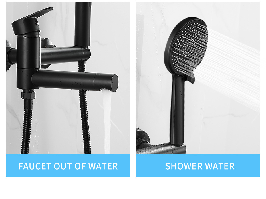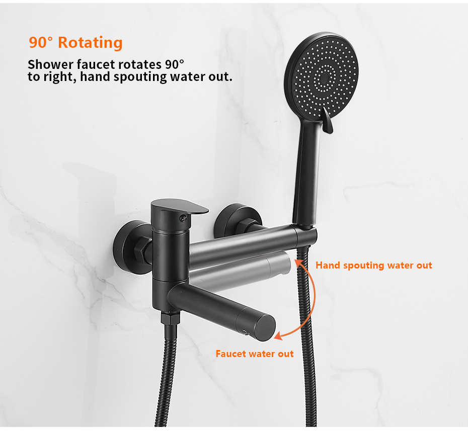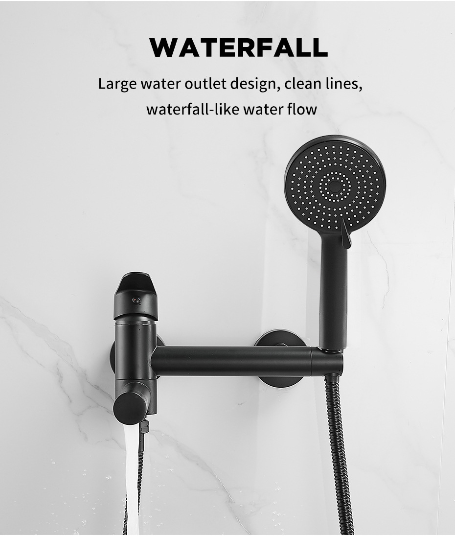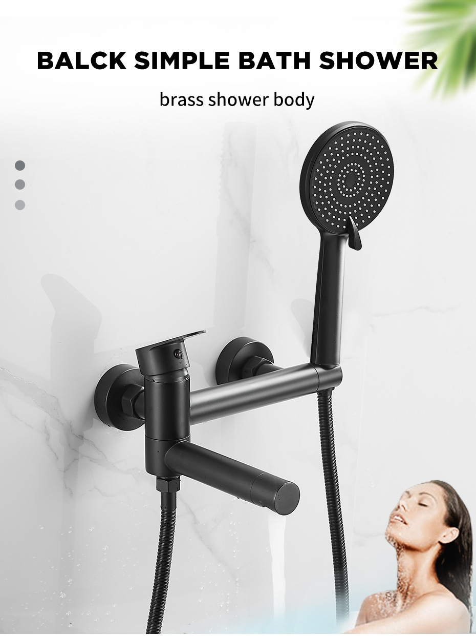 욕실 욕조 수도꼭지 뜨거운 차가운 샤워 스위치 간단한 세트 검은 도금 샤워 수도꼭지