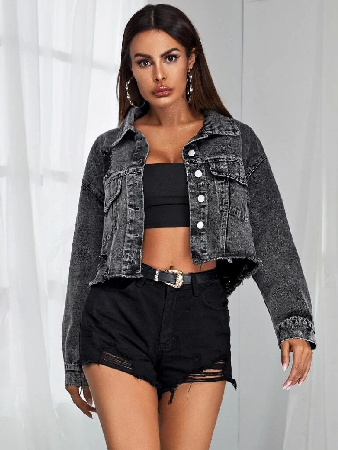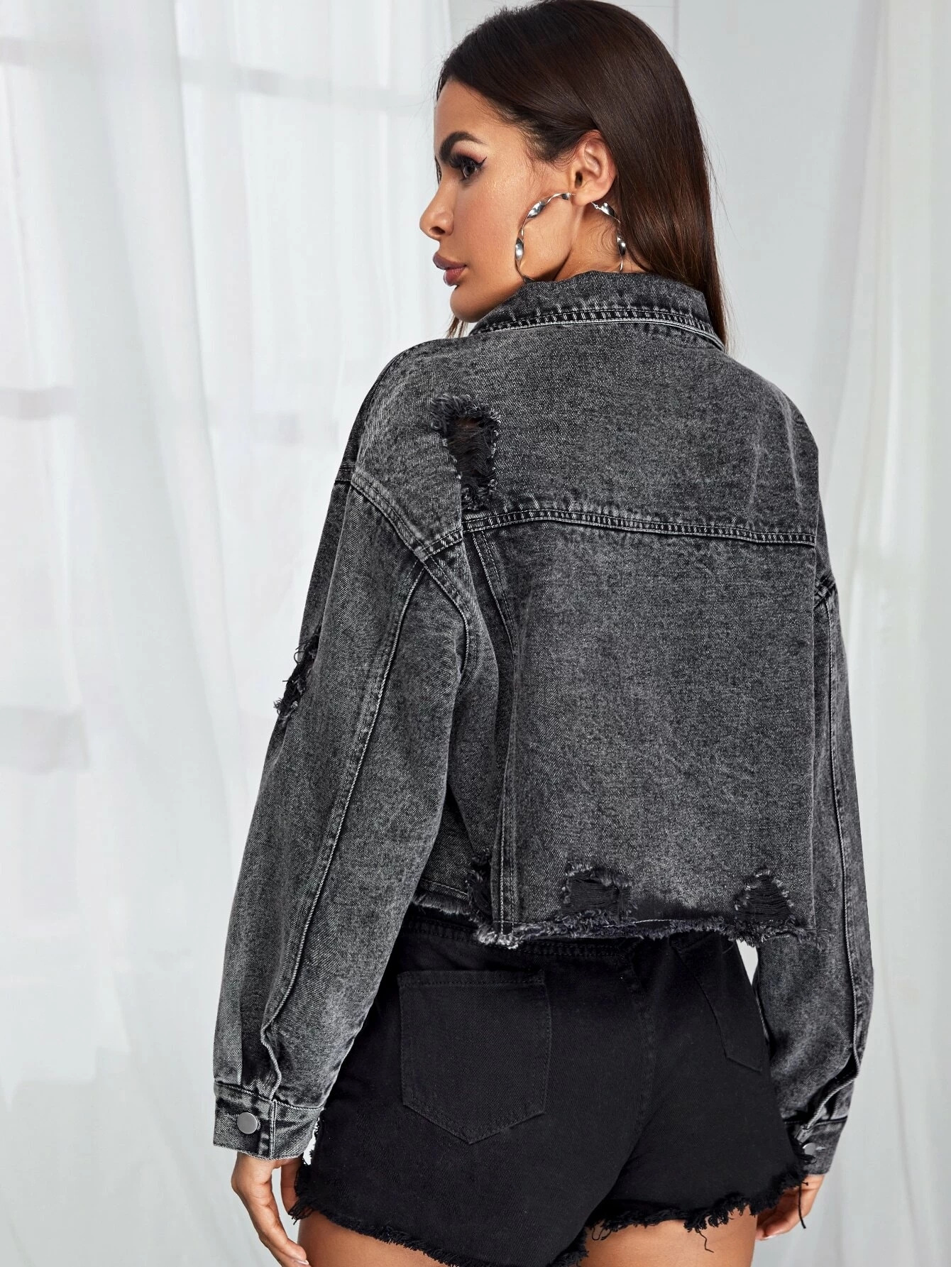 S057 # 국경 여자 데님 재킷 유럽과 미국 대외 무역 새로운 패션 버 홀 데님 재킷