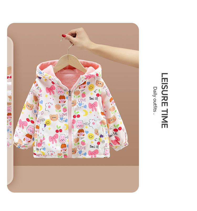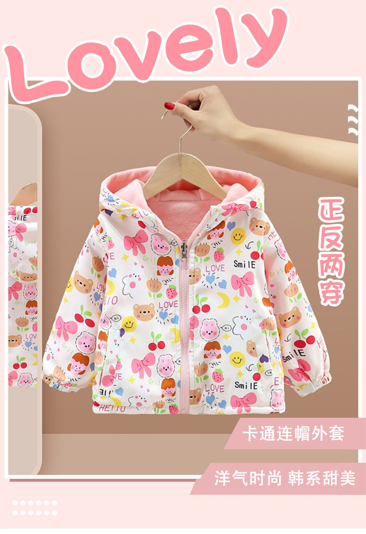 소녀 2025 양면 재킷 새로운 어린이 서양식 봄 가을 기모 러셔 옷 아기 소녀 아이들의 트렌디 한 바람막이스토어 가기