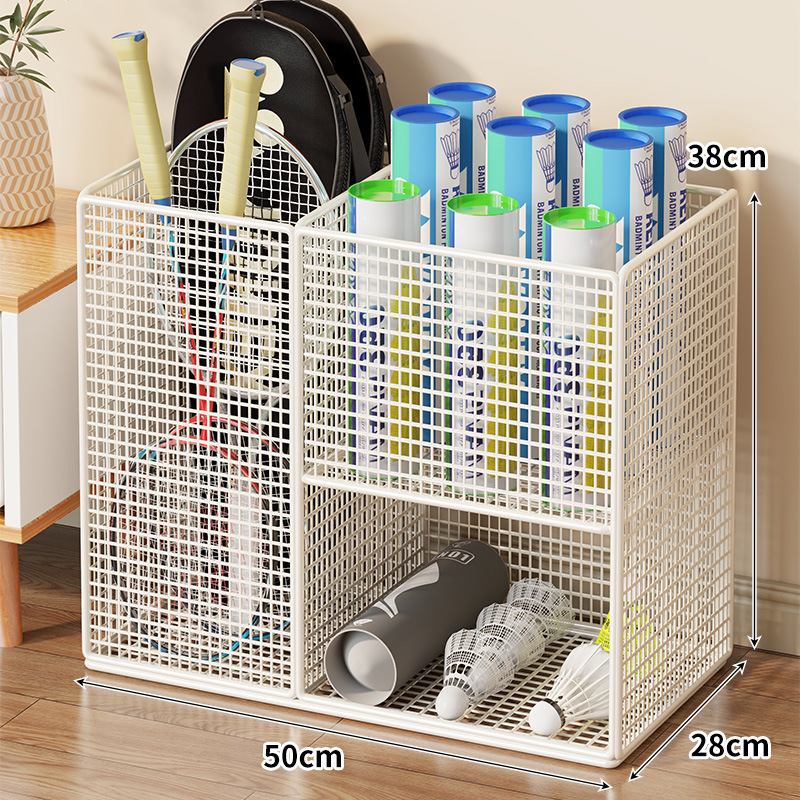 배드민턴 라켓 스토리지 랙 바퀴 달린 운동 가능한 피트니스 장비 보관 랙 가정용 대용량 요가 매트 보관 바구니