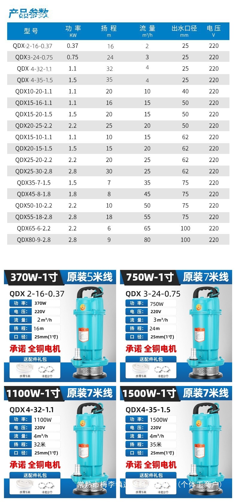 • 1.5인치 1100W [헤드 20m, 유량 10입방미터] 220V 7m선