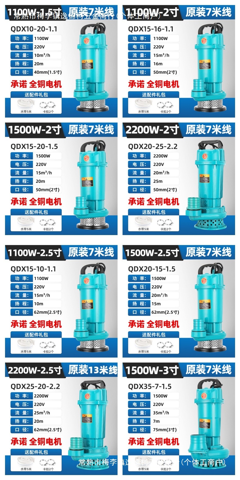• 2인치 1500W [헤드 20m 유량 15입방미터] 220V 7m 라인