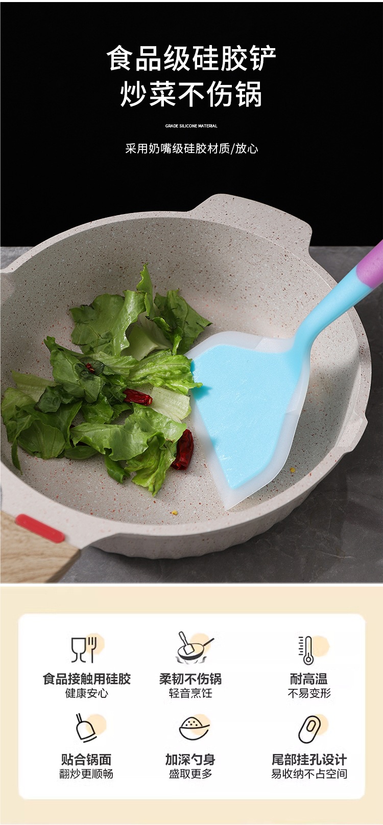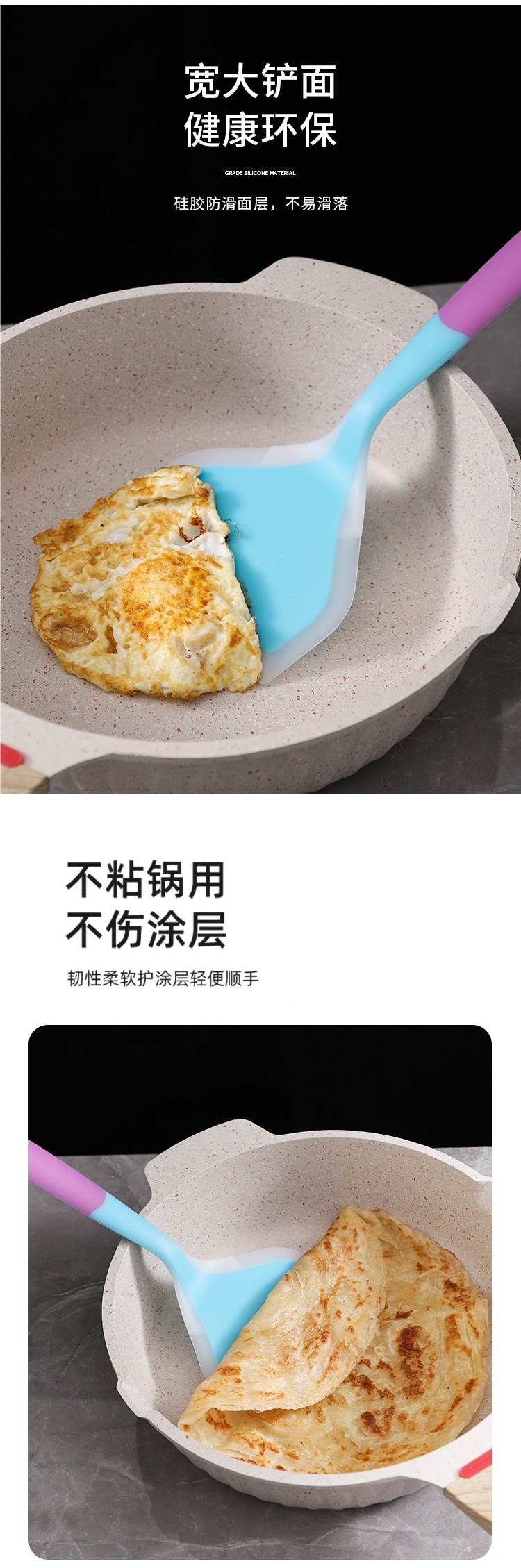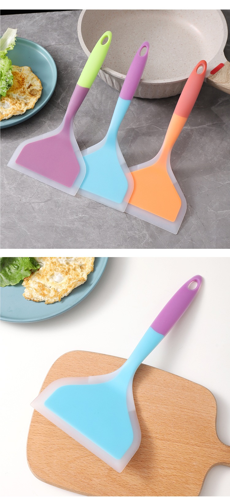 팬케이크 실리콘 삽 고온 저항하는 비 스틱 팬 삽 냄비 베이킹 스크레이퍼 주방 가구 볶음 삽