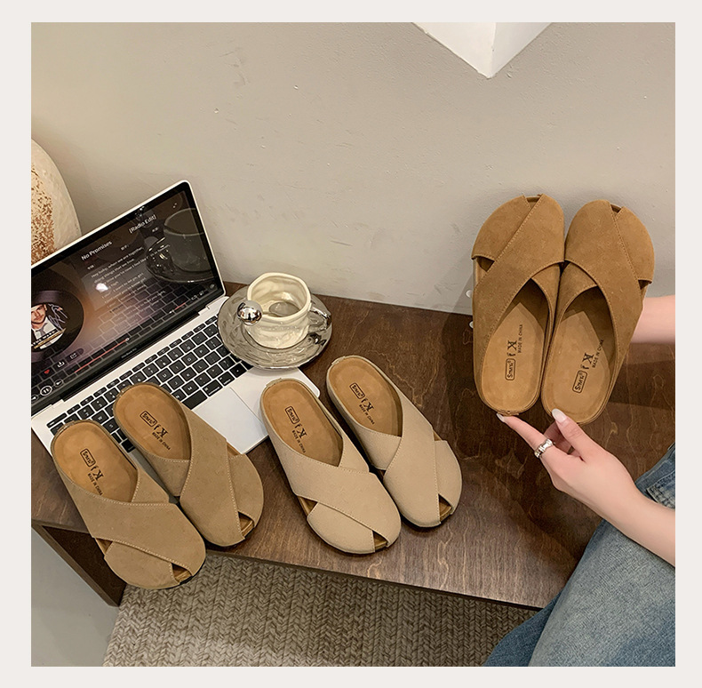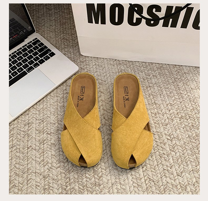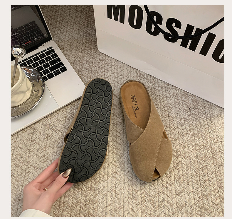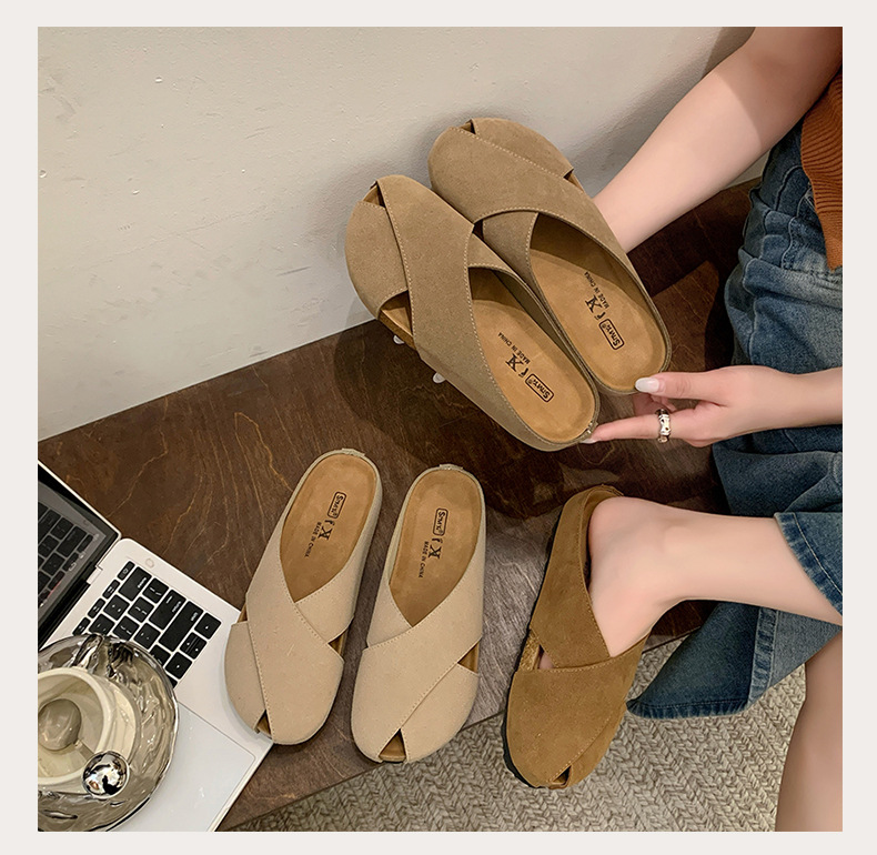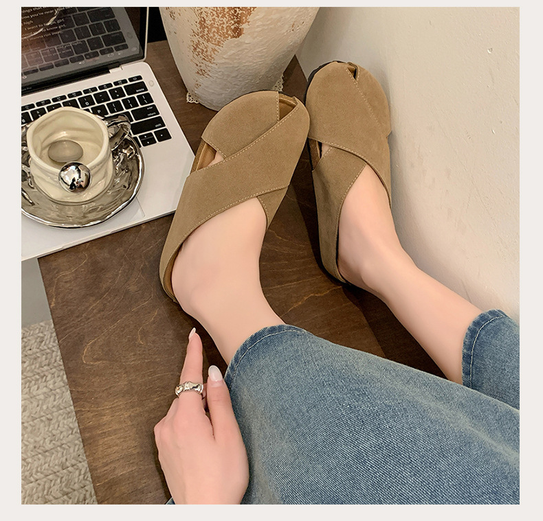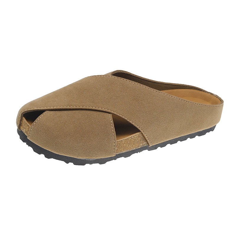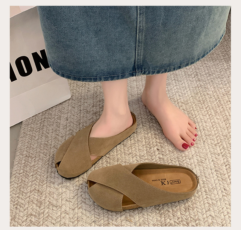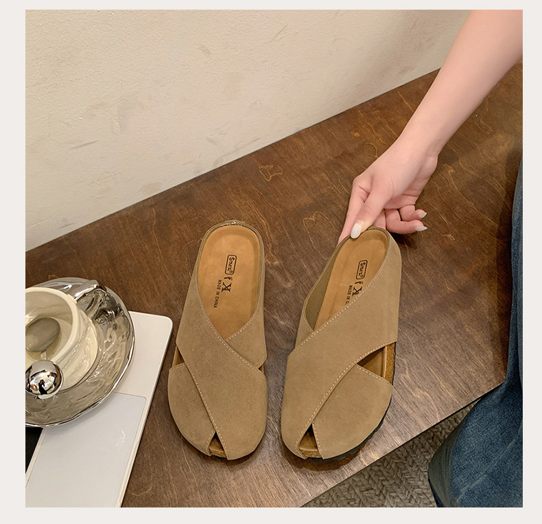 플랫 하단 Baotou 하프 슬리퍼 여자 2025 년 여름 새로운 편안한 미끄럼 통근 레트로 올매치 버켄토 샌들