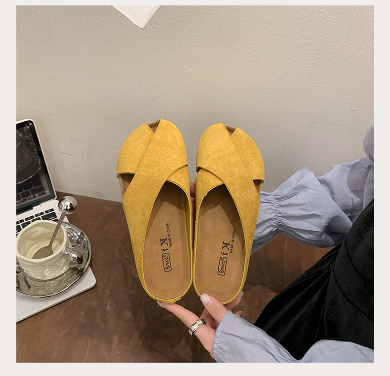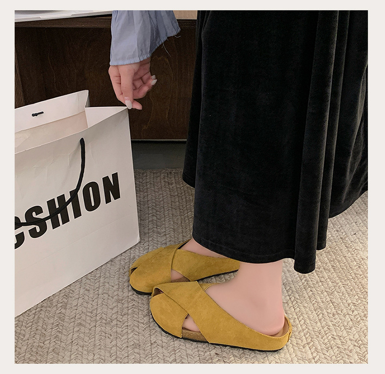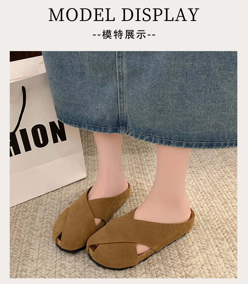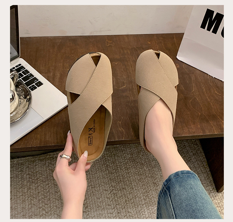 플랫 하단 Baotou 하프 슬리퍼 여자 2025 년 여름 새로운 편안한 미끄럼 통근 레트로 올매치 버켄토 샌들스토어 가기