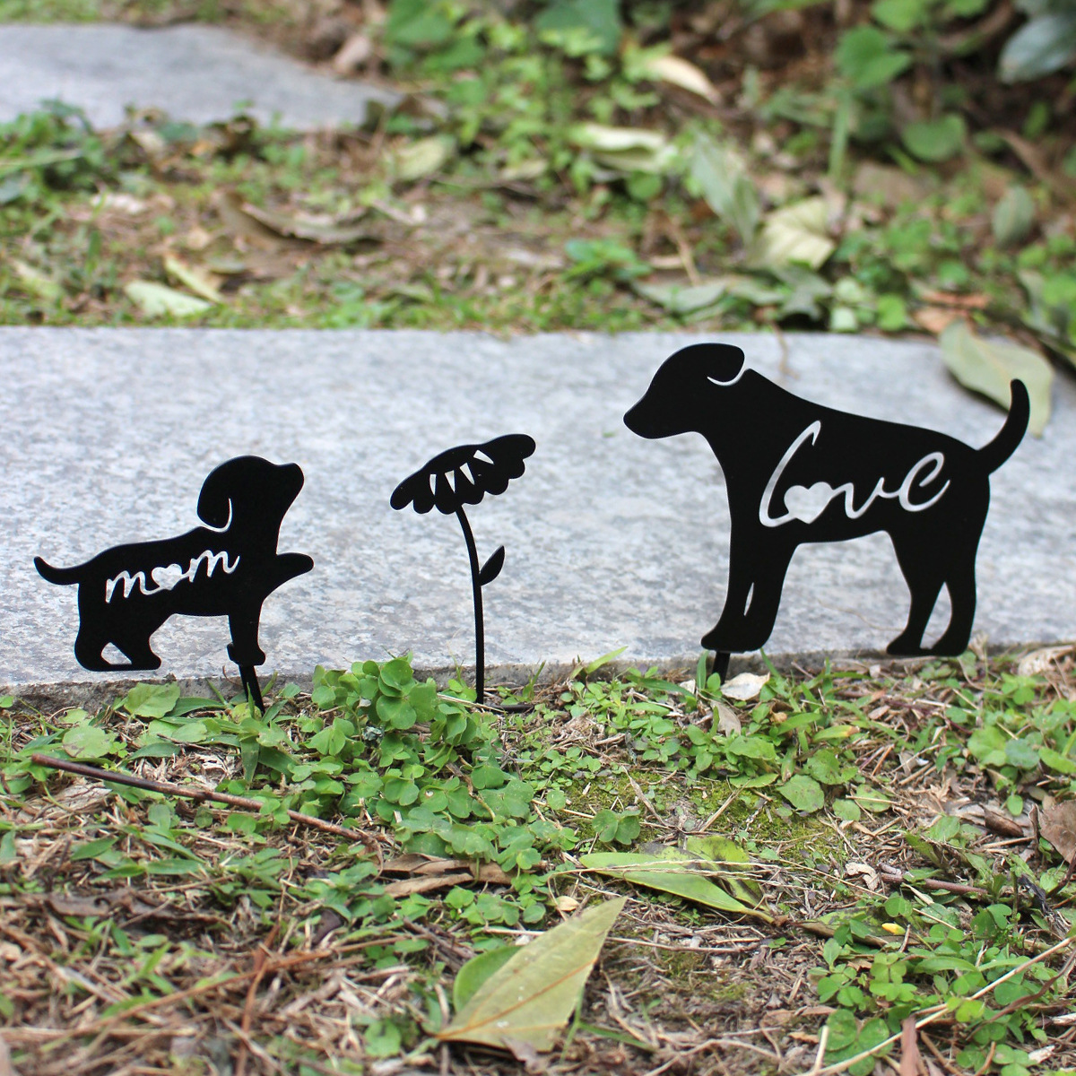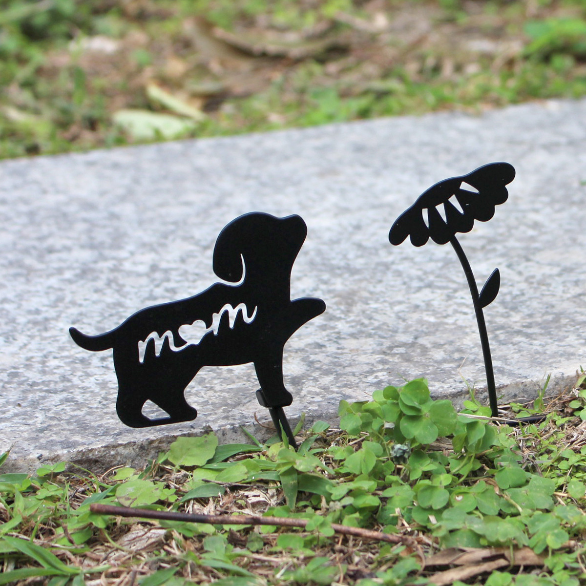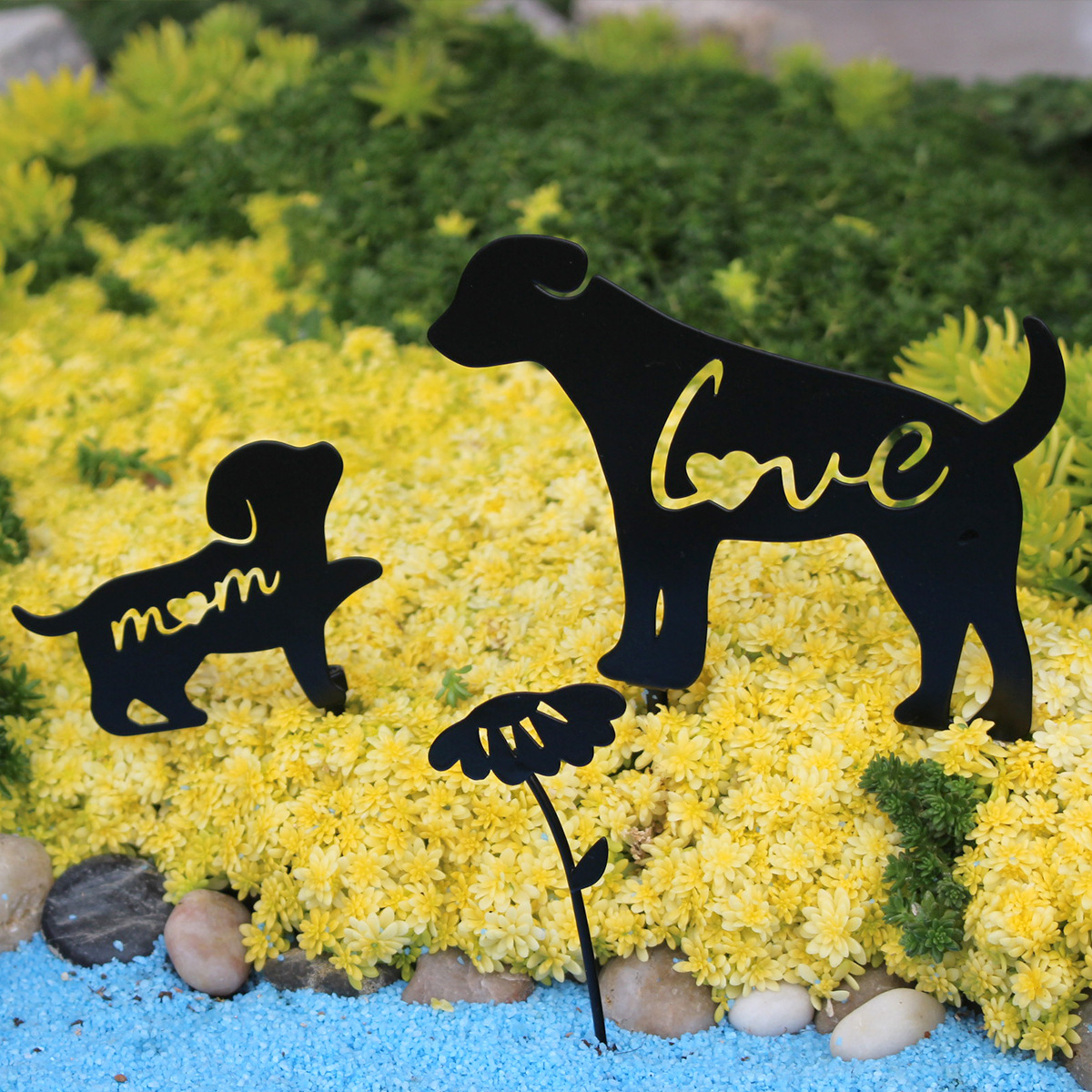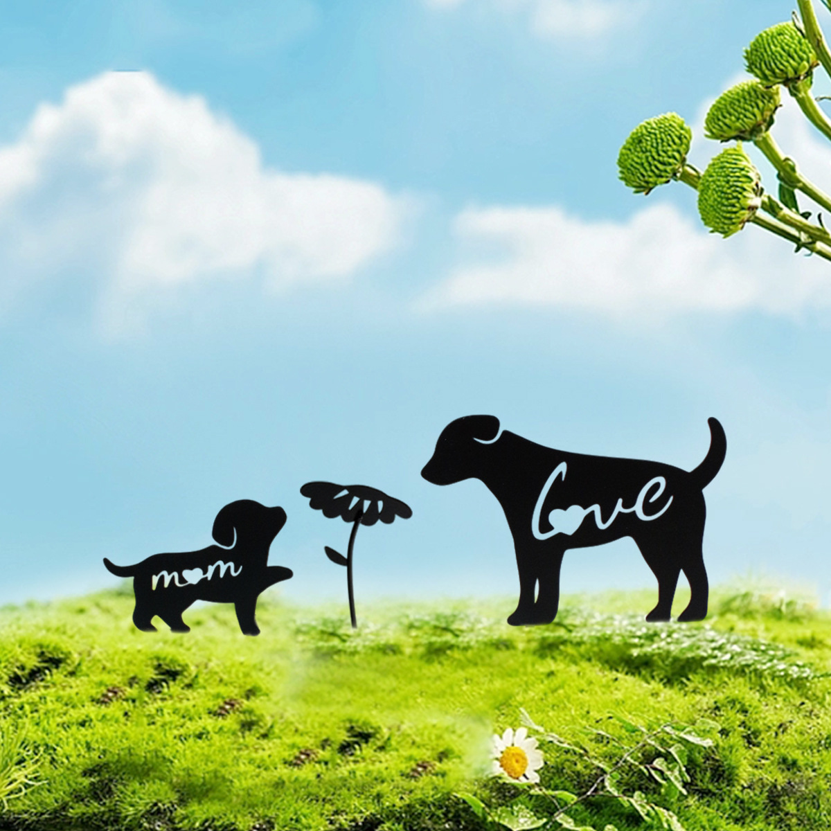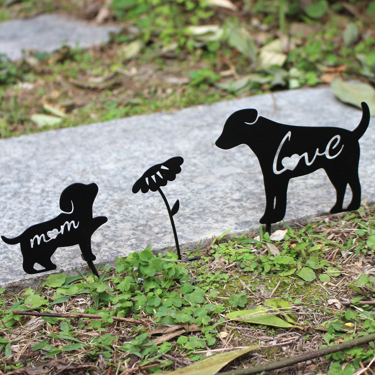 국경 간 새로운 부모-자식 개 동상 금속 더미 야외 정원 검은 개 실루엣 안뜰 잔디 장식 공예 장식품스토어 가기
