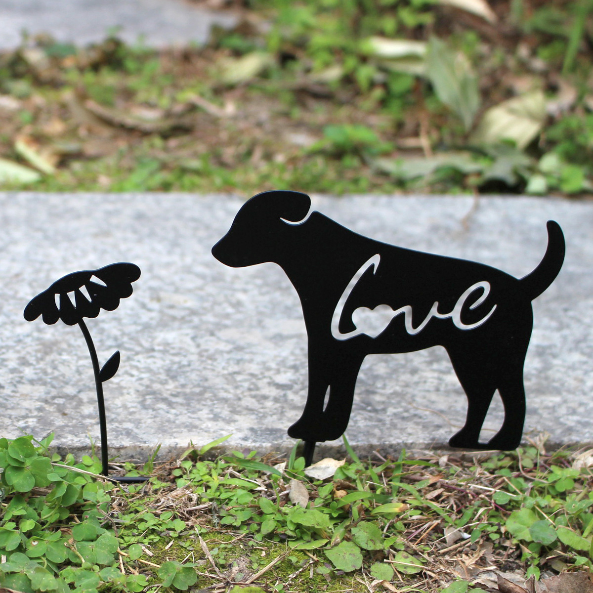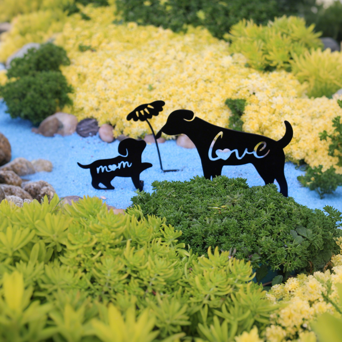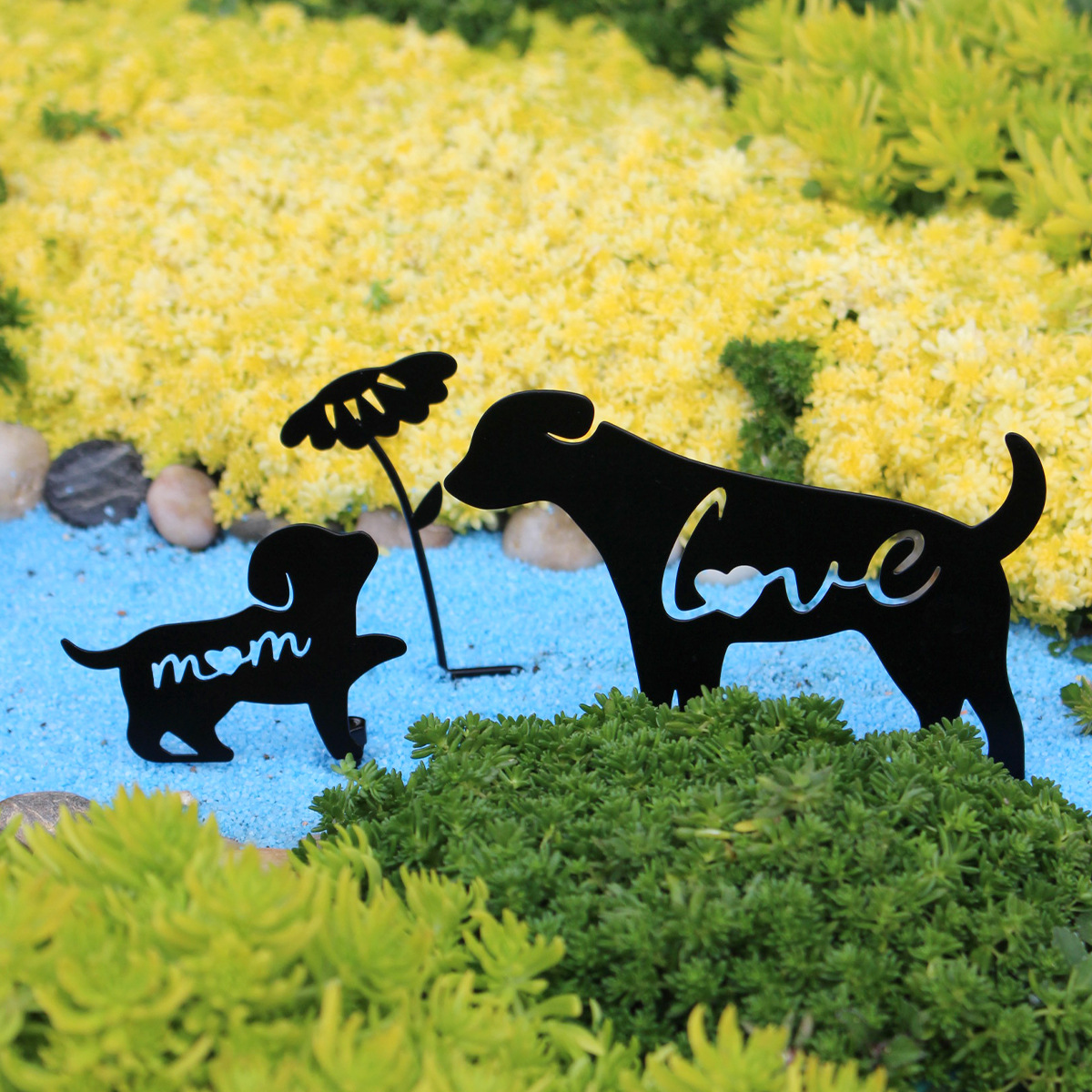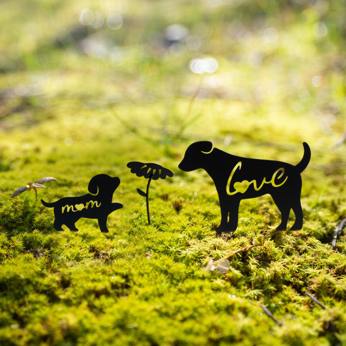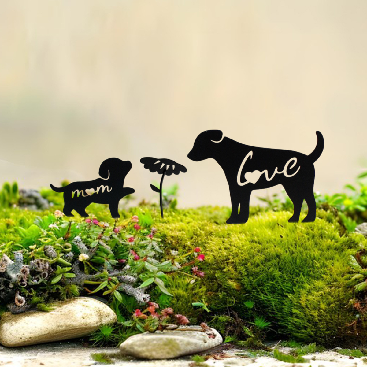 국경 간 새로운 부모-자식 개 동상 금속 더미 야외 정원 검은 개 실루엣 안뜰 잔디 장식 공예 장식품스토어 가기