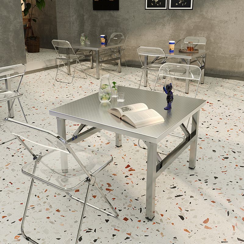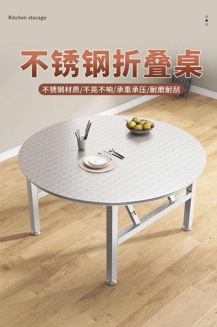 추가로 두꺼운 모든 스테인레스 스틸 접이식 테이블 다파이 스톨 데스크탑 라운드 다이닝 테이블 작은 아파트 렌탈 룸 농촌 가정용 테이블스토어 가기