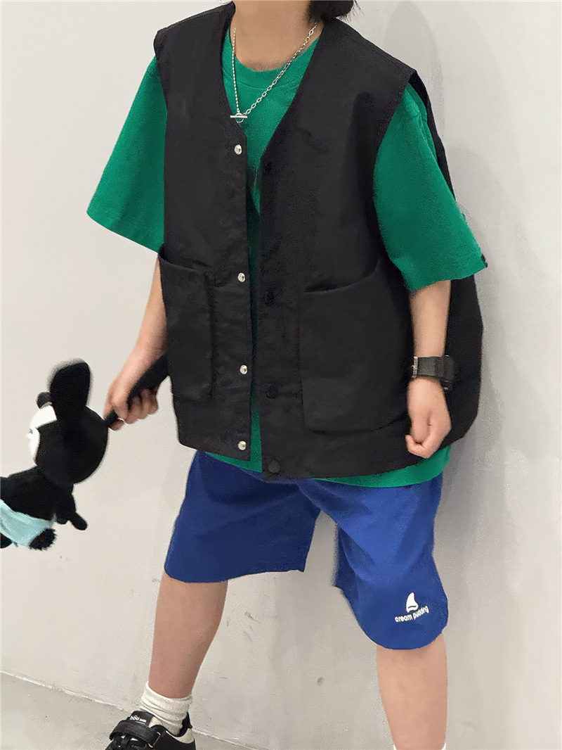 바오두 아동복 남아 조끼 봄 가을 작업복 조끼 아기 봄옷 남자아이 100-170 조끼