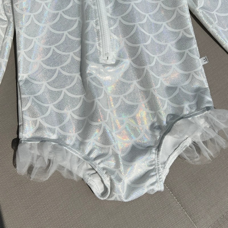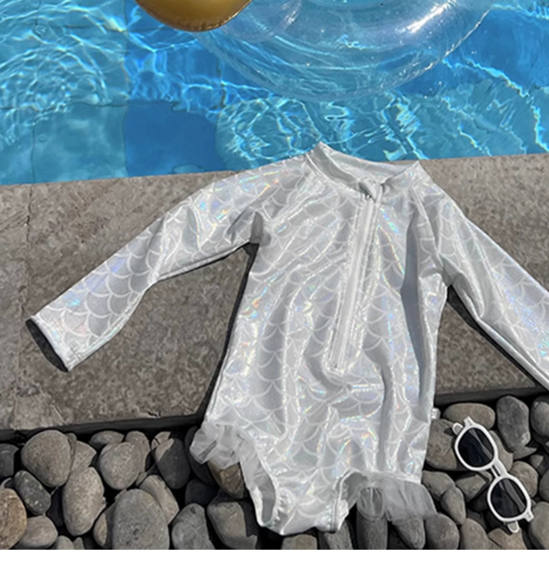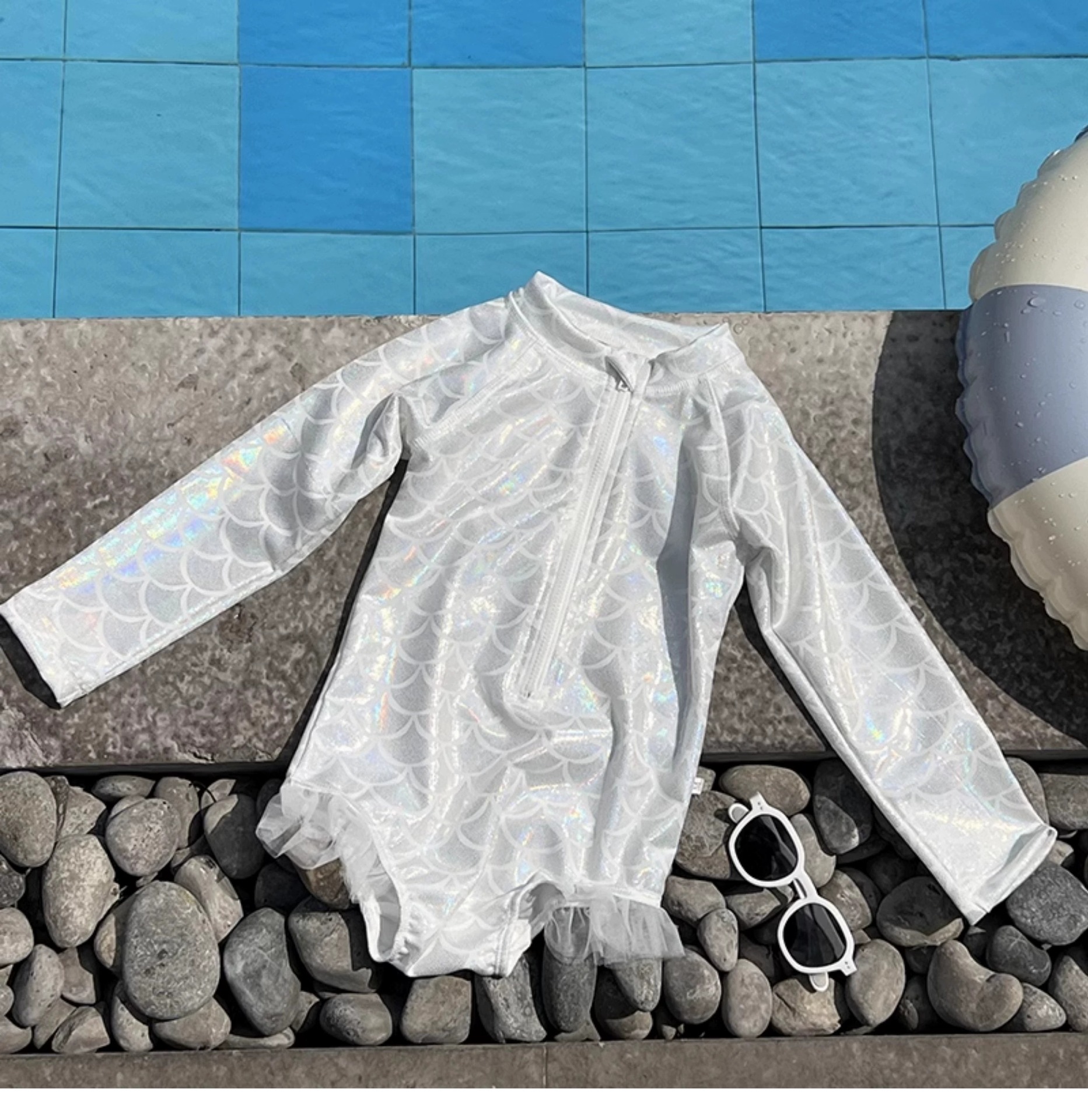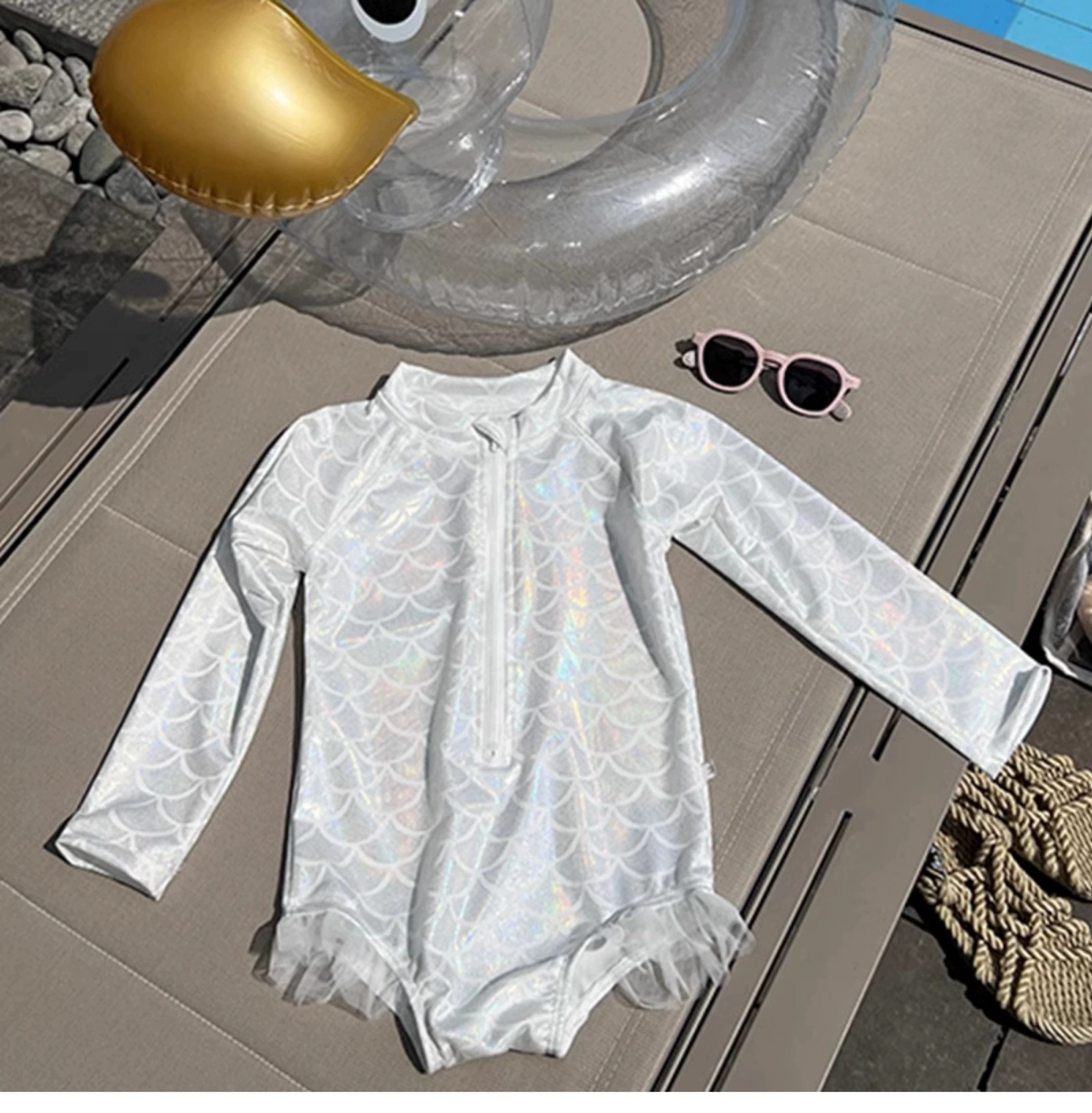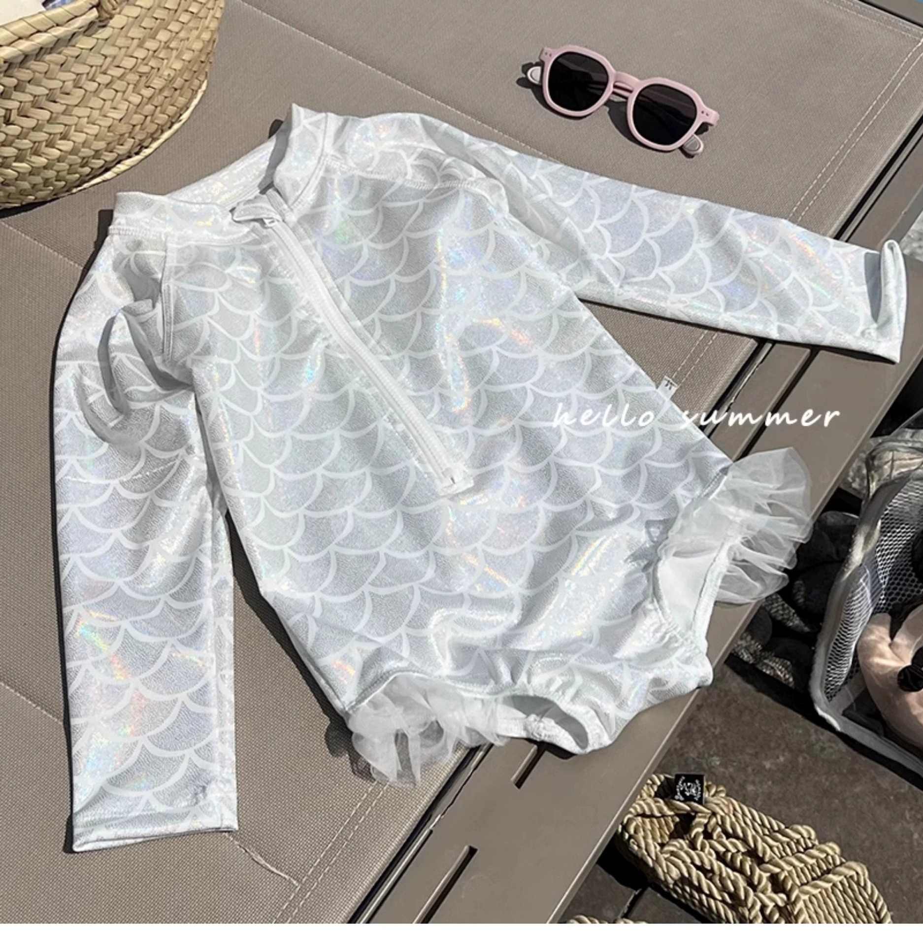 여자 인어 수영복 2025 새로운 스타일 어린이 긴팔 선 스크린 원피스 수영복 소녀 공주 수영복