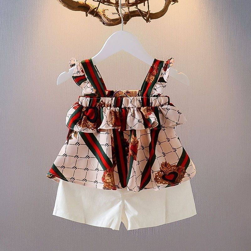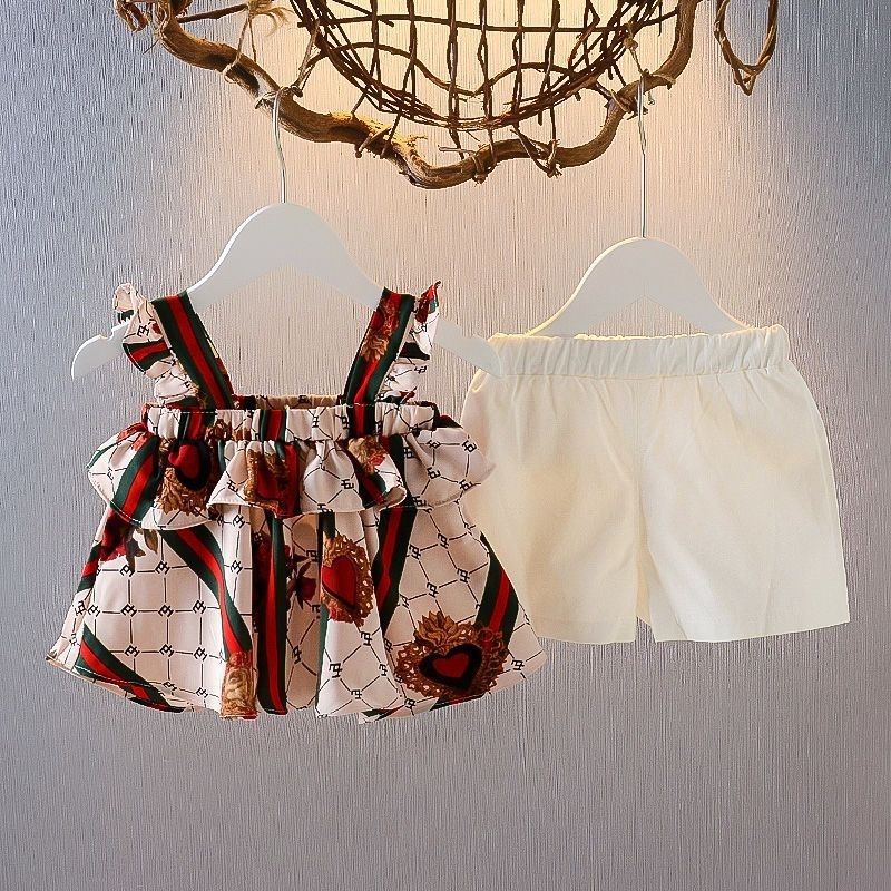 소녀 여름 세트 어린이 여름 인터넷-유명한 유행 아기의 캐주얼 느슨한 민소매 투피스 슬링 세트스토어 가기